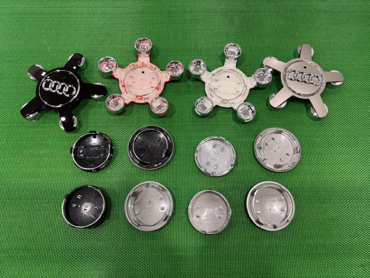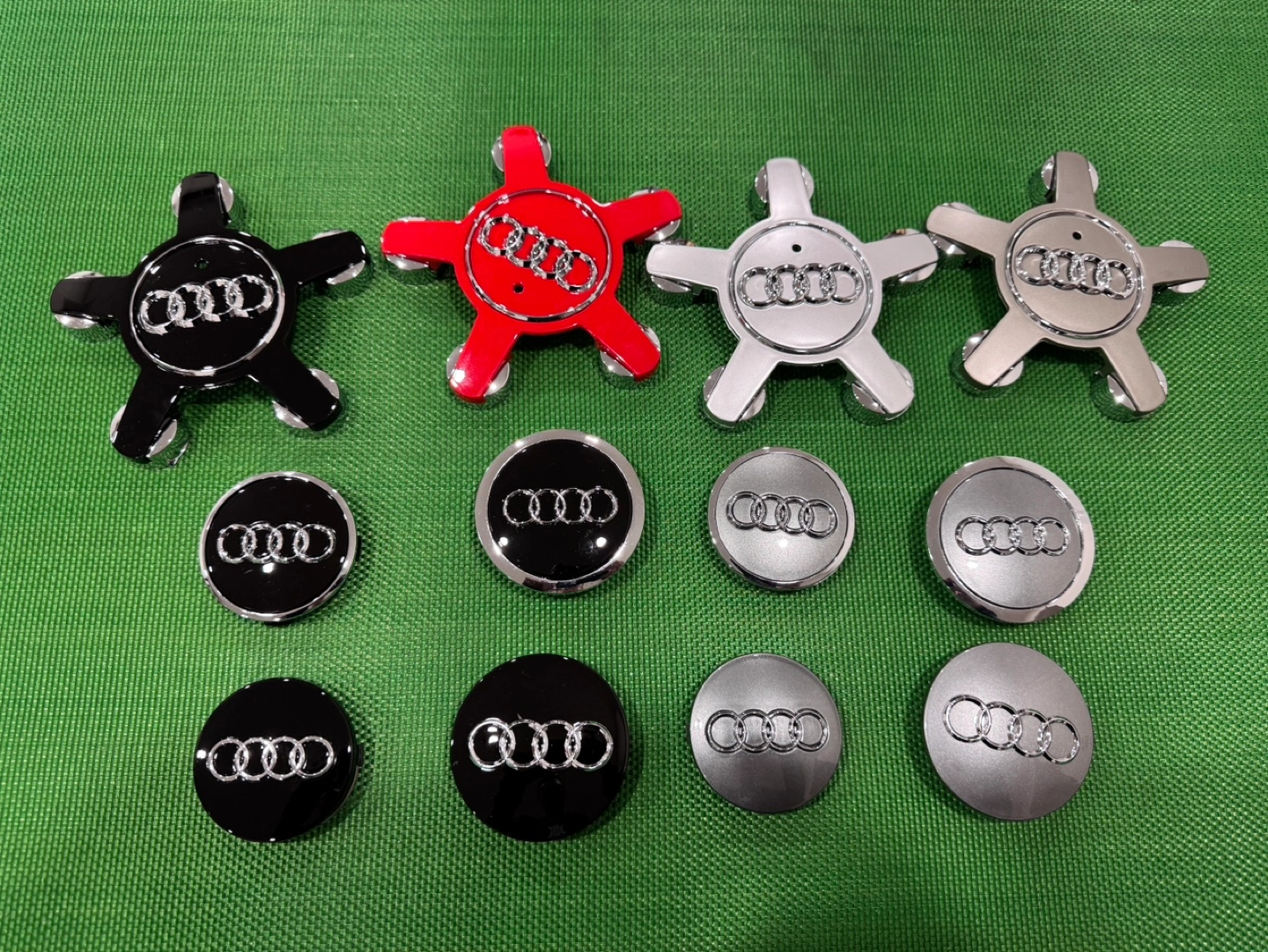 12$40 a set of 4 Selling a set of Audi wheel center caps. They come in various colours, including black, red, and silver. Perfect for replacing lost or damaged caps!