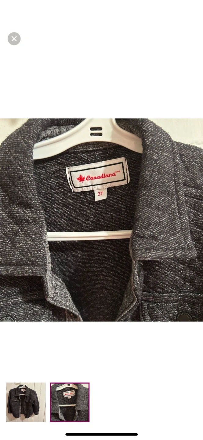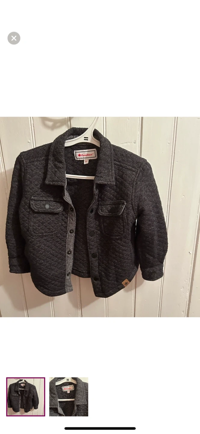 Canadian brand. Snap button up grey quilted Shacket. Grey in colour. Size 3t. Brand new condition