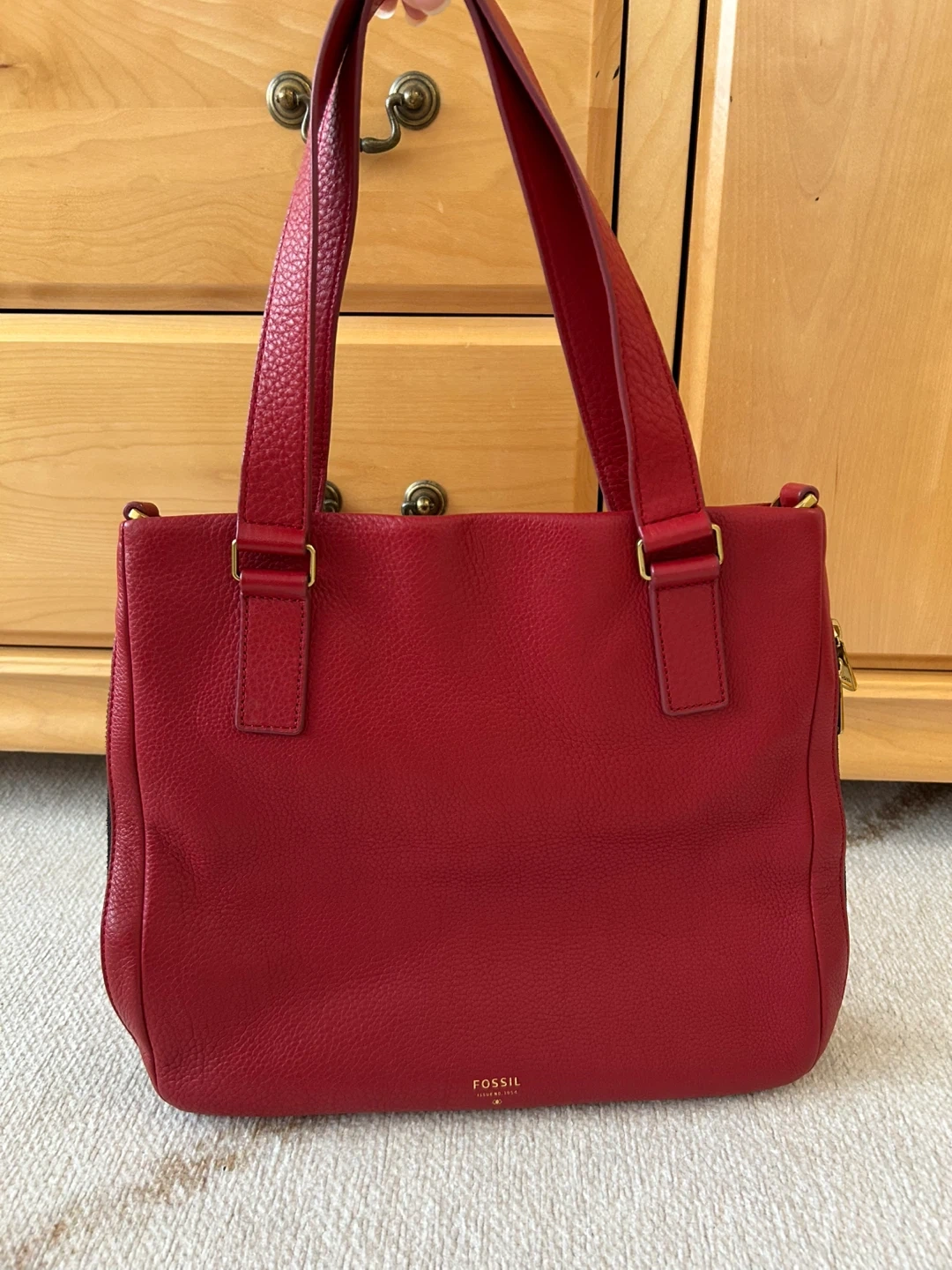 Selling a beautiful red leather tote bag from Fossil! It's in great condition and perfect for everyday use. The bag features a zipper closure and a spacious interior. Feel free to message me with any questions!