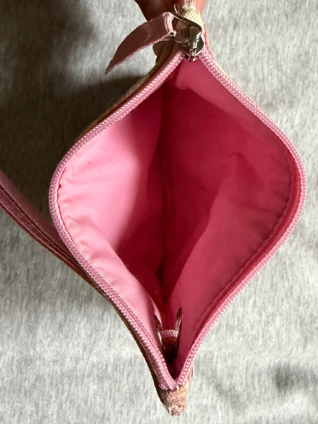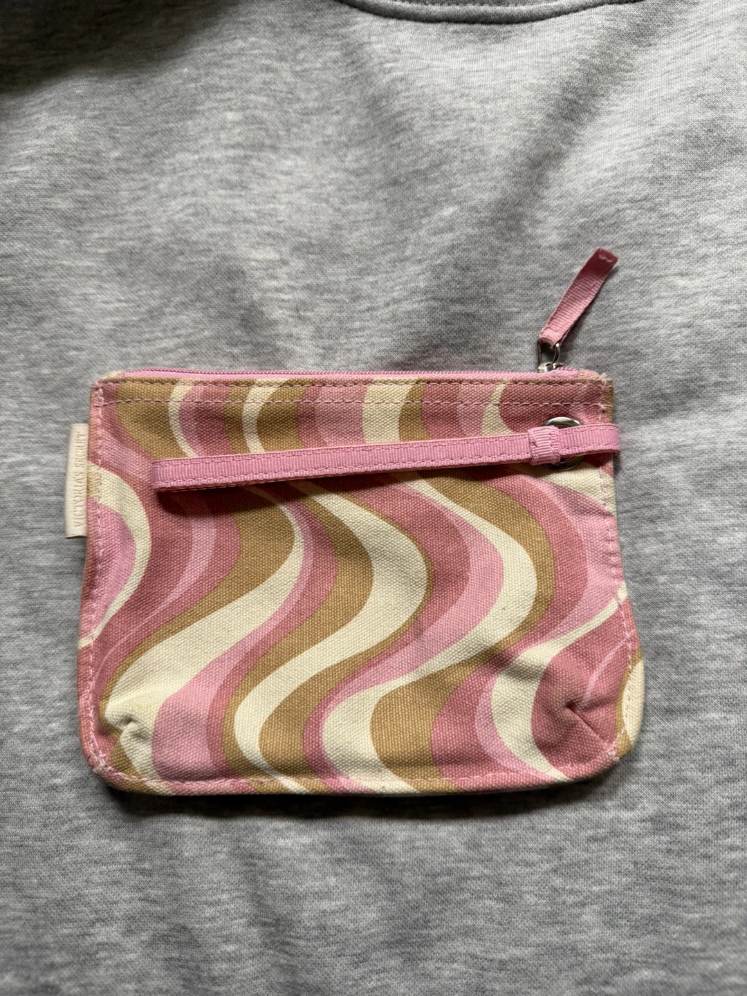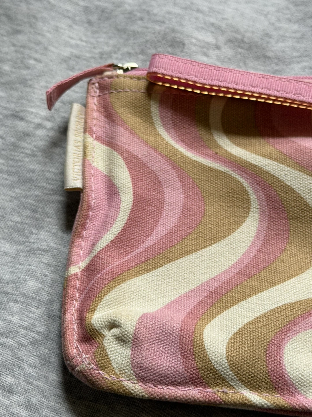 Cute little Victoria's Secret pouch with a pink wave design! It's perfect for carrying small items like makeup. The inside is a pretty pink colour too.