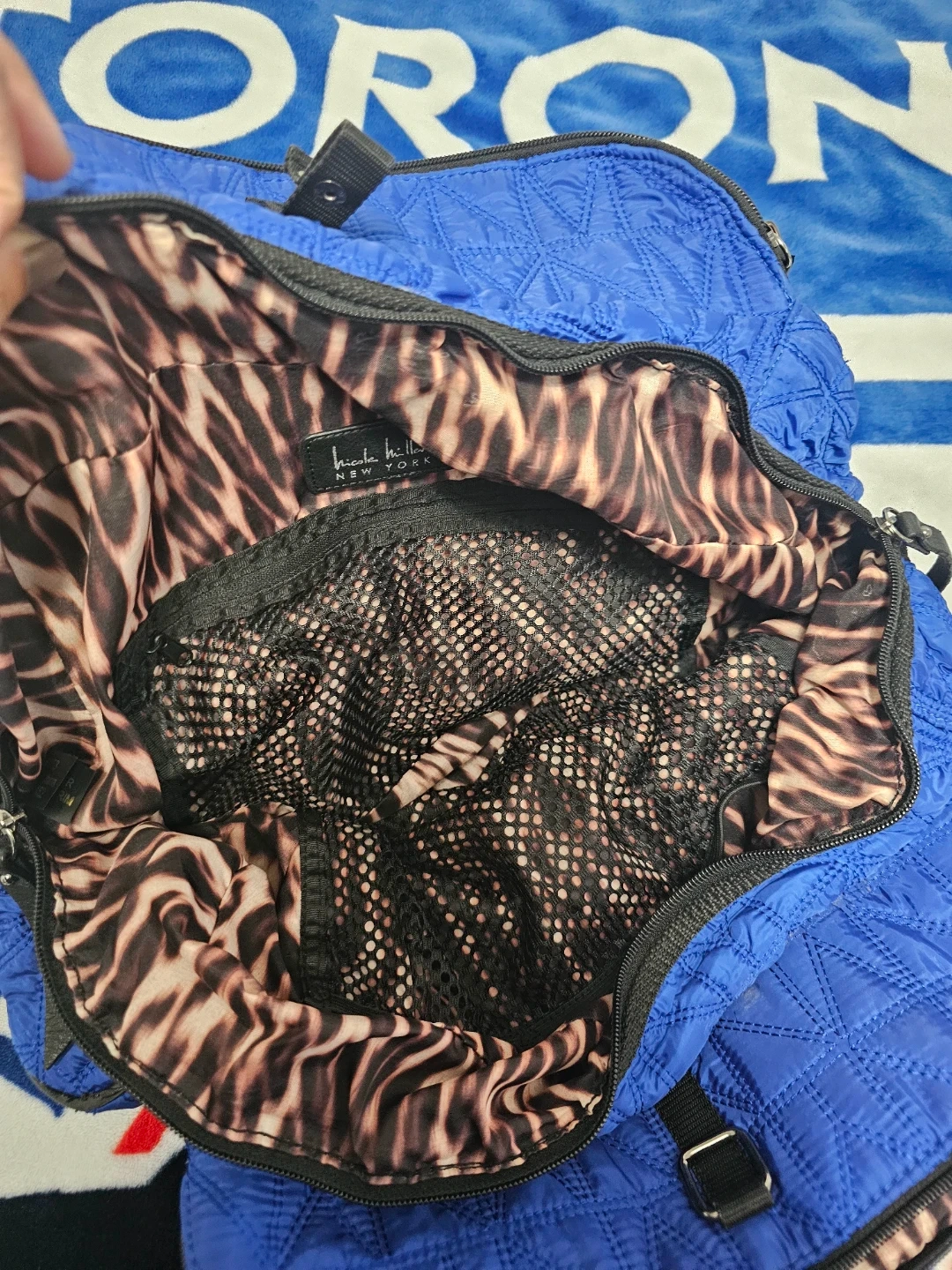 Colour: Blue/Black with Leopard print interior (can actually see what's inside of your bag)