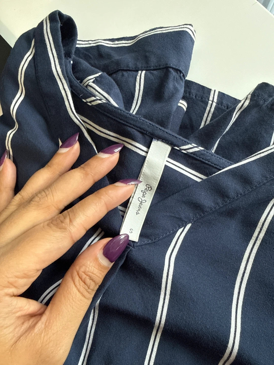 Here's a cute Pepe Jeans blouse with a vertical striped pattern! It's a size small and would be a great addition to your wardrobe. Use for casual or formal