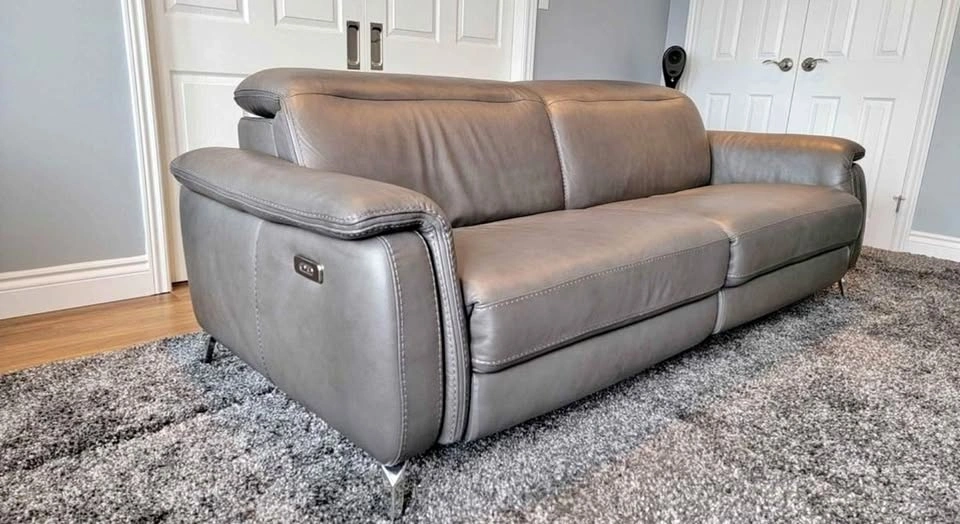 Selling a barely used, like new, Bellini Italian sofa with motorized reclining feature. Model is "Oxford S" in DGY (dark grey) color. Purchased May 2022, took ownership in August (made-to-order). Selling due to space constraints (mother in-law requires assistance and needs to move in).