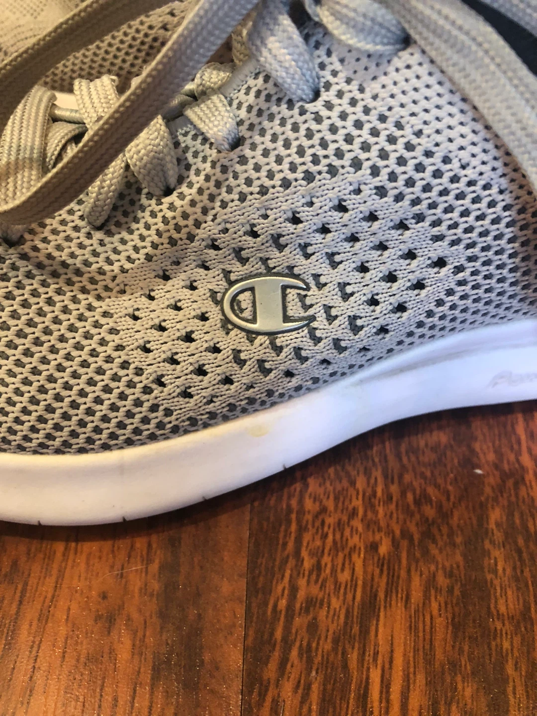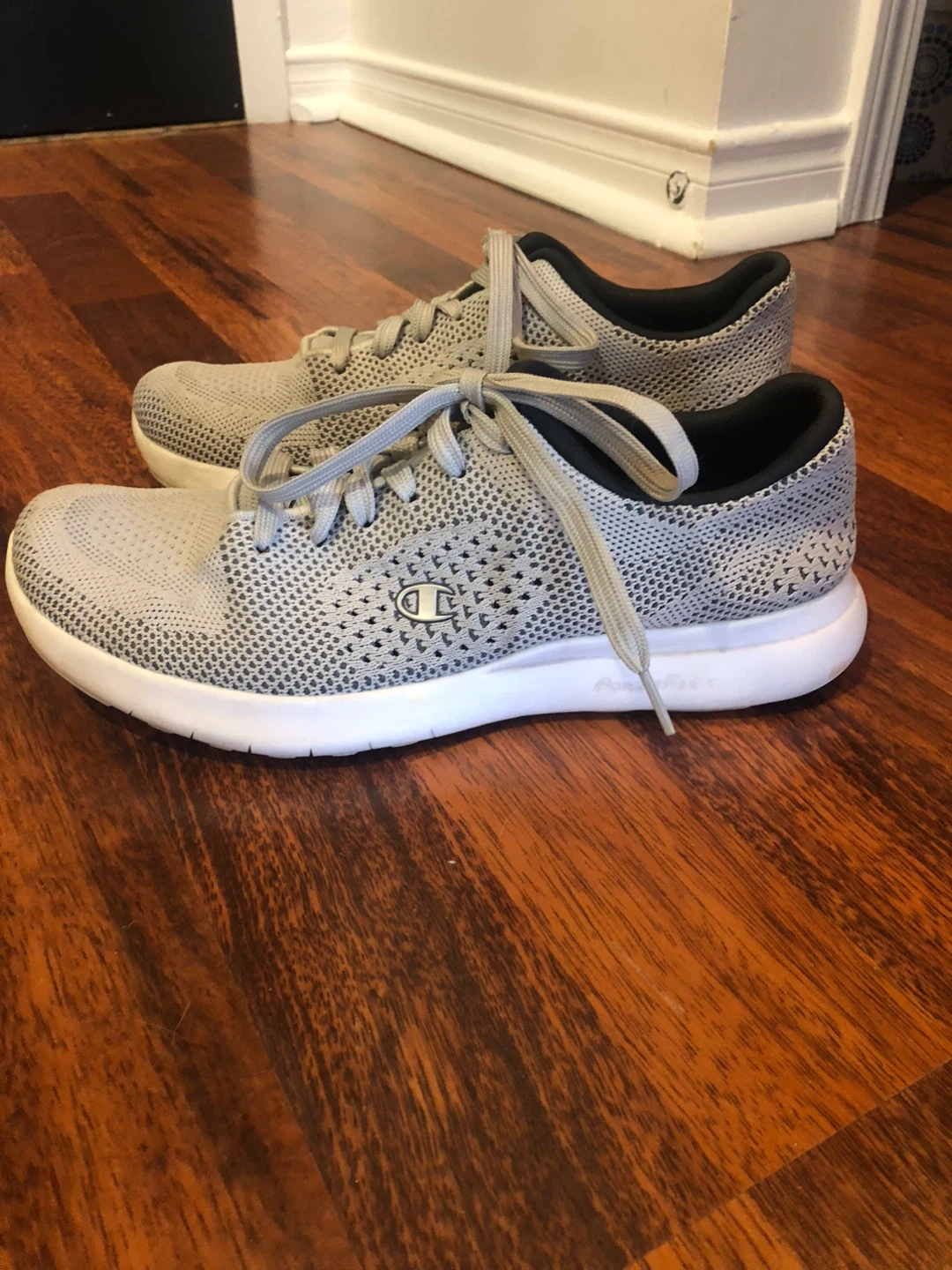 Selling a pair of Champion running shoes in a neutral grey colour! They're in amazing condition and ready for your next run or casual outing. The lightweight design makes them super comfy for all-day wear