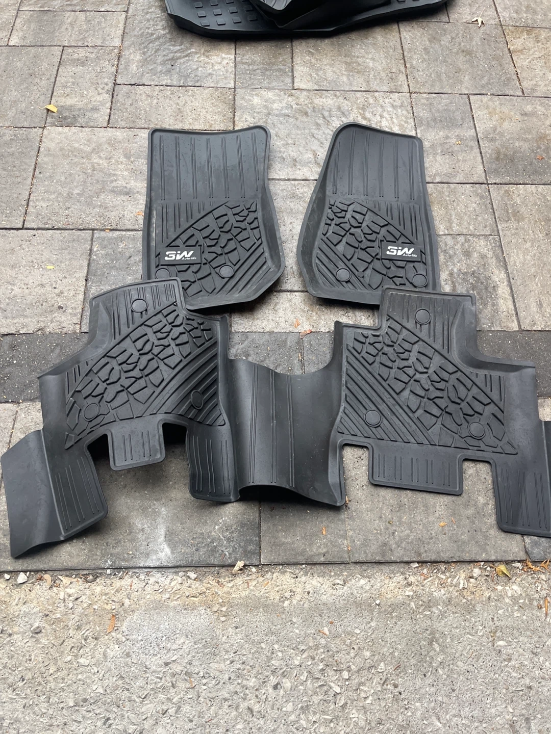 Selling a set of 3W Auto Life floor mats designed for a Jeep Wrangler JK (2014-2018) Unlimited 4-door model (Non JL or 4XE). These are TPE all-weather custom-fit floor liners, including the 1st and 2nd row. They're in great shape and ready to protect your Jeep's interior!