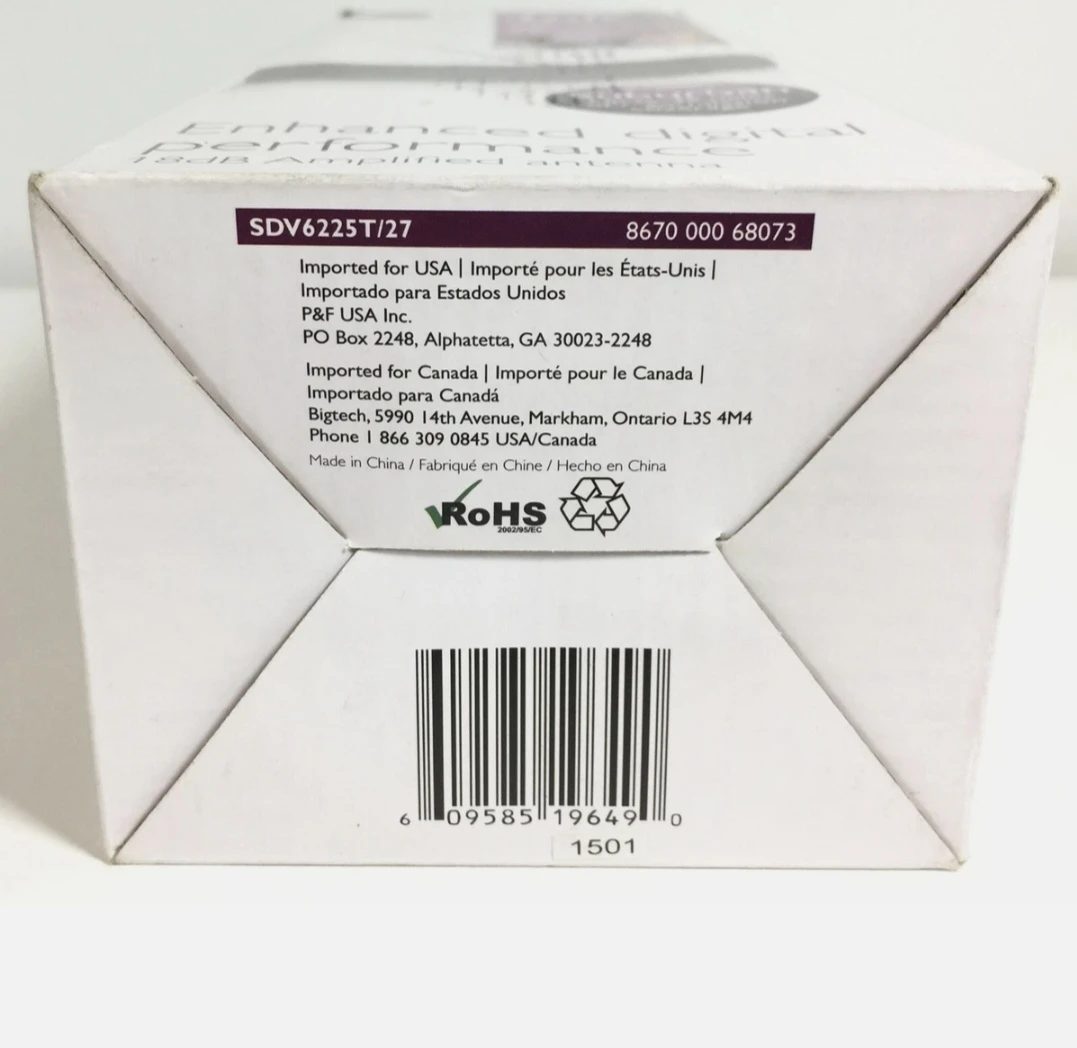 Selling a Philips indoor TV antenna, model SDV6225T/27. It comes with the box and all components!