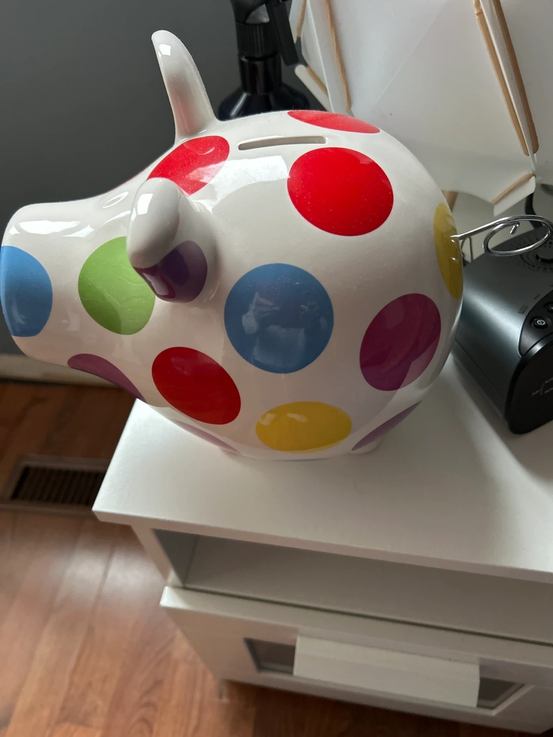 Selling a cute piggy bank from Salt & Pepper! It features a fun polka dot design. Perfect for child’s room etc. pick up area Bayview and Shepherd.