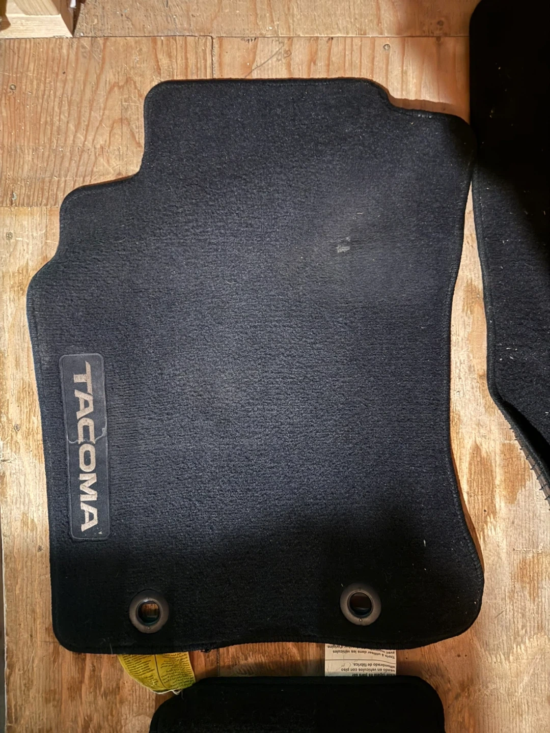 Selling a set of black floor mats for a Toyota Tacoma. They were pulled out immediately and replaced with rubber matts - so are in like new condition with just a little dust from storage.