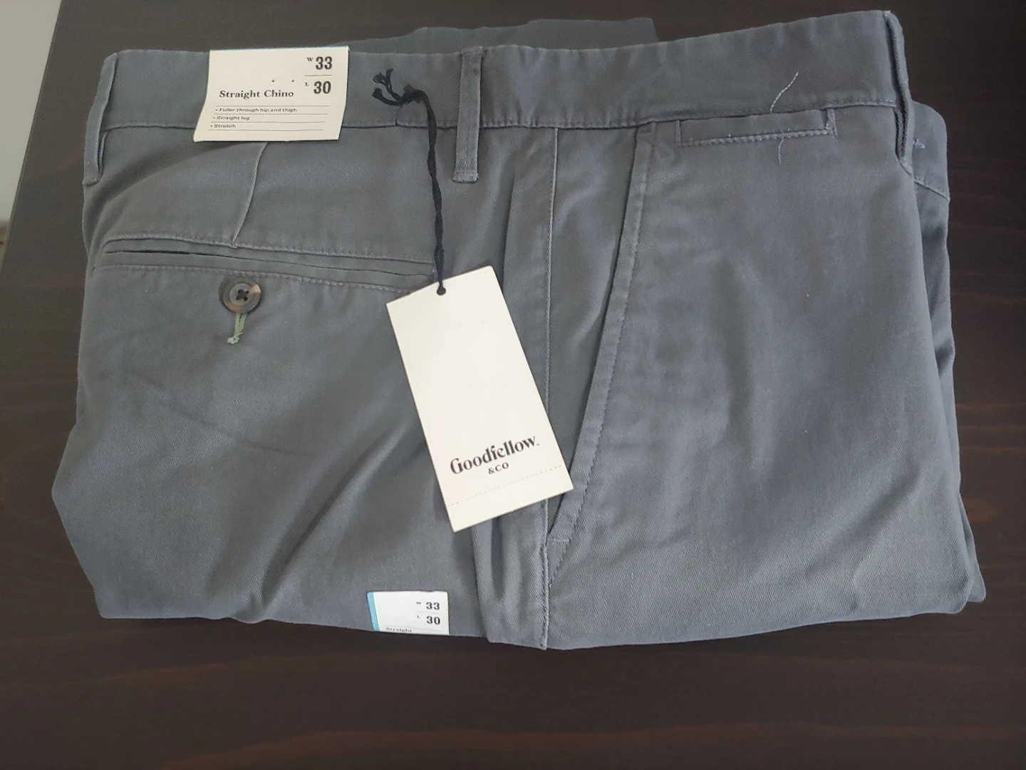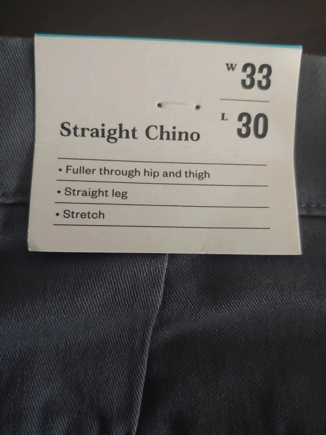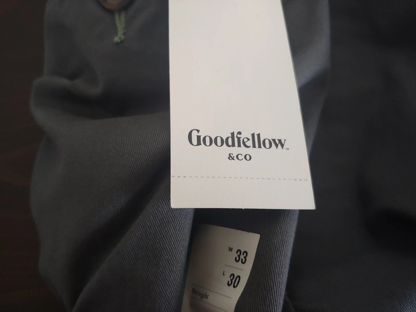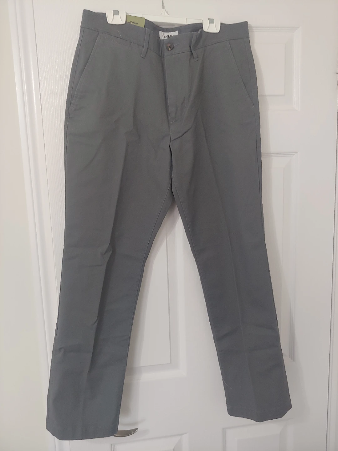 Selling a pair of grey mens Goodfellow & Co straight chino pants in size 33x30. These are a stylish and comfortable choice for everyday wear. They feature a straight leg and a bit of stretch for added comfort. New with tags.