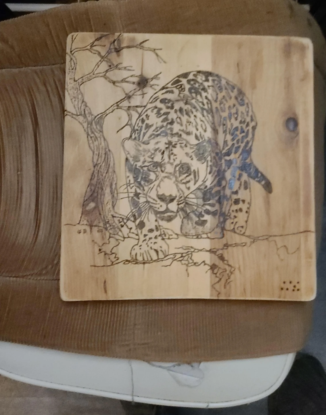Buy & SellHandmade Wood Burning ArtHandmade Wood Burning Art$17Here's a unique piece of wood-burned art featuring a jaguar and a tree. It would make a great addition to any room!WHERE TO MEETBlackwatch TowerView MapSELLERTonyjoePort Hope250 reviews0 chats·1 favorites·11 views