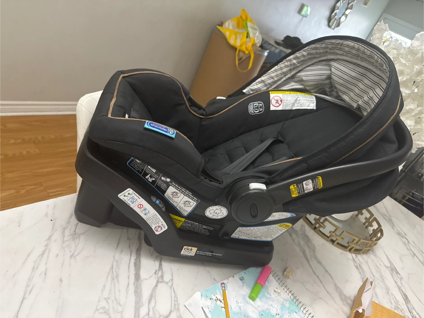 Selling a Graco Click Connect infant car seat! It's in great condition and ready for a new little one. This car seat provides a safe and comfortable ride for your baby.