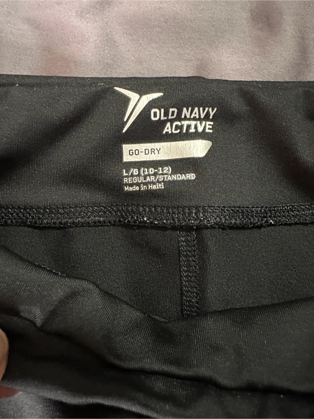 One black with purple insert, mid calf length, Old Navy activewear size L.