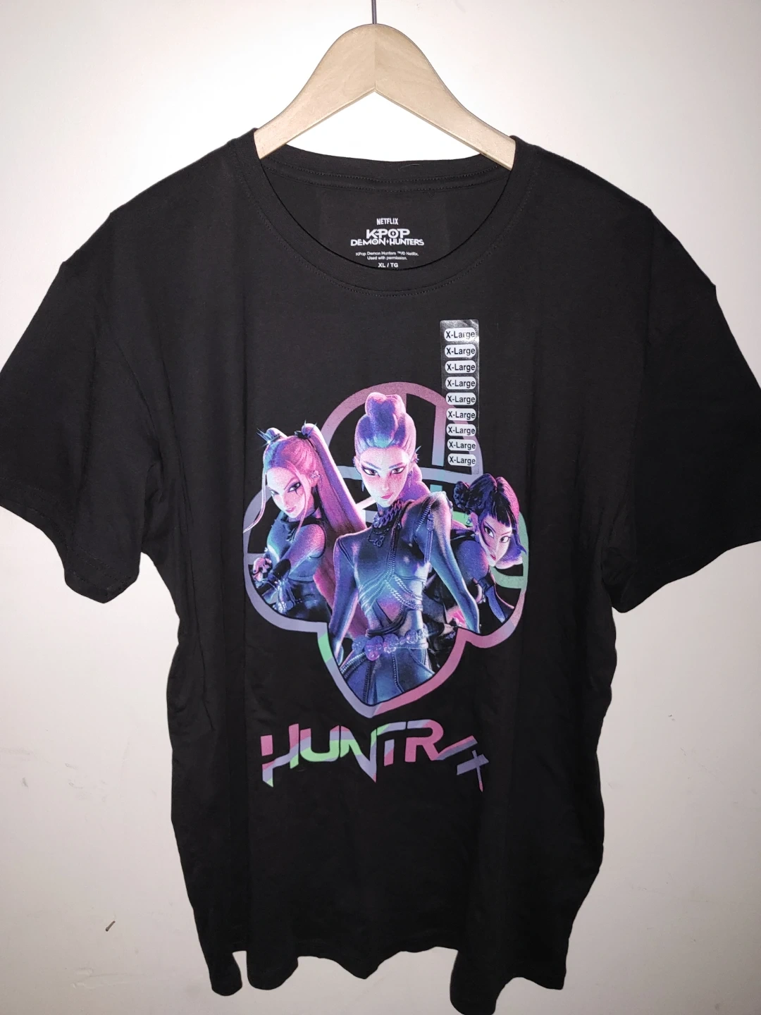 Selling a Netflix KPop Demon Hunters t-shirt in size XL! It's in great condition and features a cool design. Perfect for any fan of the show!