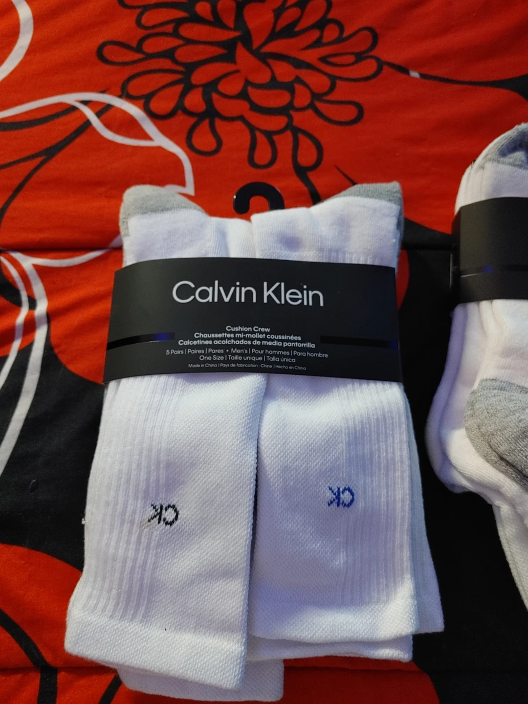 Selling a pack of Calvin Klein cushion crew socks. This pack includes 5 pairs of white socks, perfect for everyday wear! They are a one-size-fits-all item.