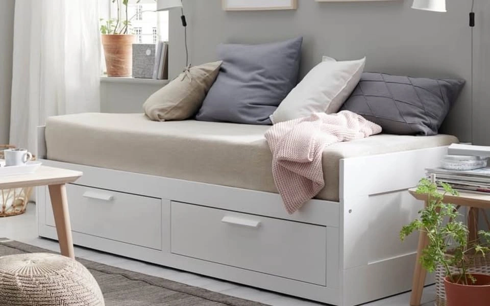 Selling an IKEA Daybed Frame with 2 Drawers and an IKEA Mattress — all in excellent condition, purchased just a few months ago.