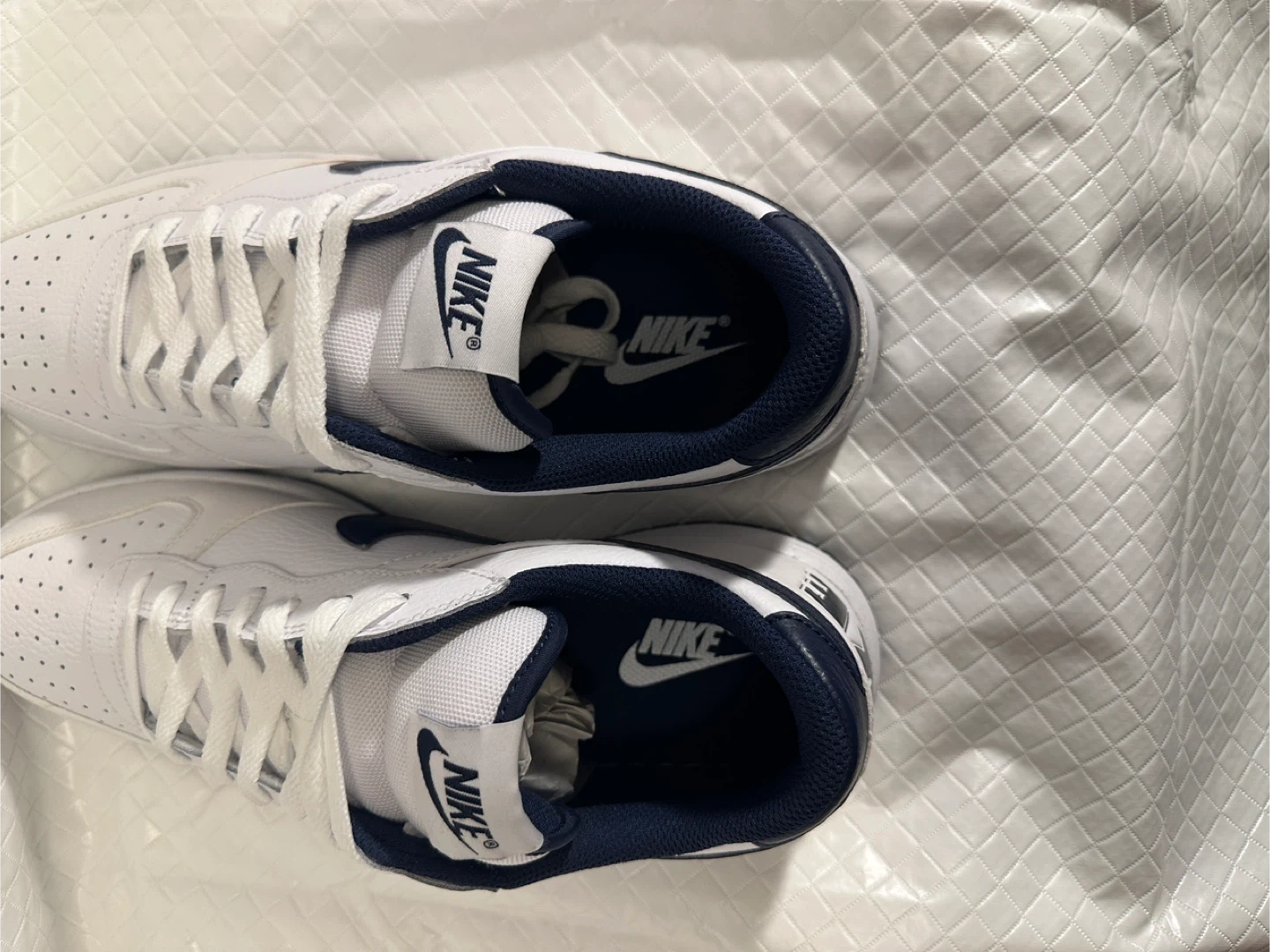 32Selling a pair of Nike Court Vision Low sneakers in white with navy accents. They're in great shape and ready for a new home! Size12 brand new sneakers cash only please