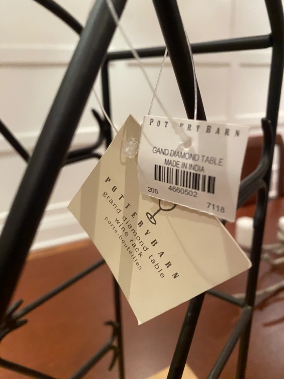 Selling a Pottery Barn Grand Diamond Table wine rack! It's in great shape and ready to hold your favourite bottles. This stylish rack is perfect for adding a touch of elegance to your dining area or kitchen