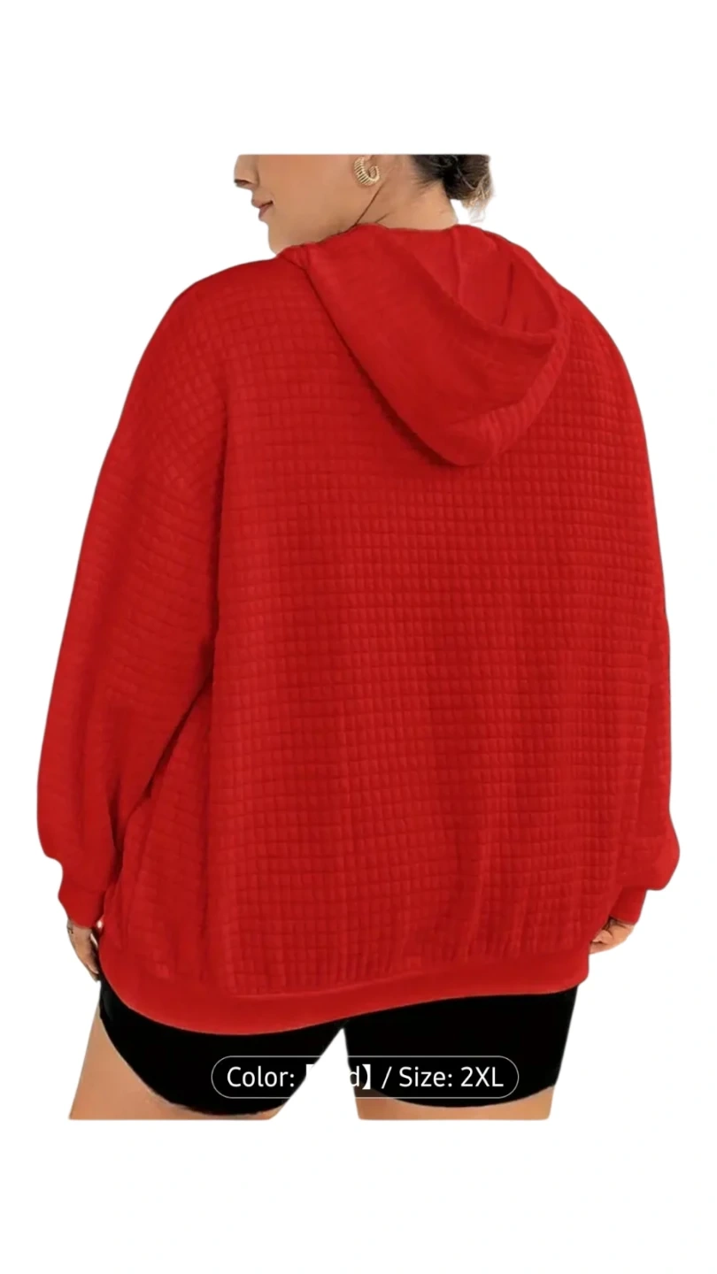 Cozy red quilted hoodie in size 2XL! It's a great addition to your wardrobe for those chilly days. The quilted texture adds a unique touch to this comfortable hoodie.