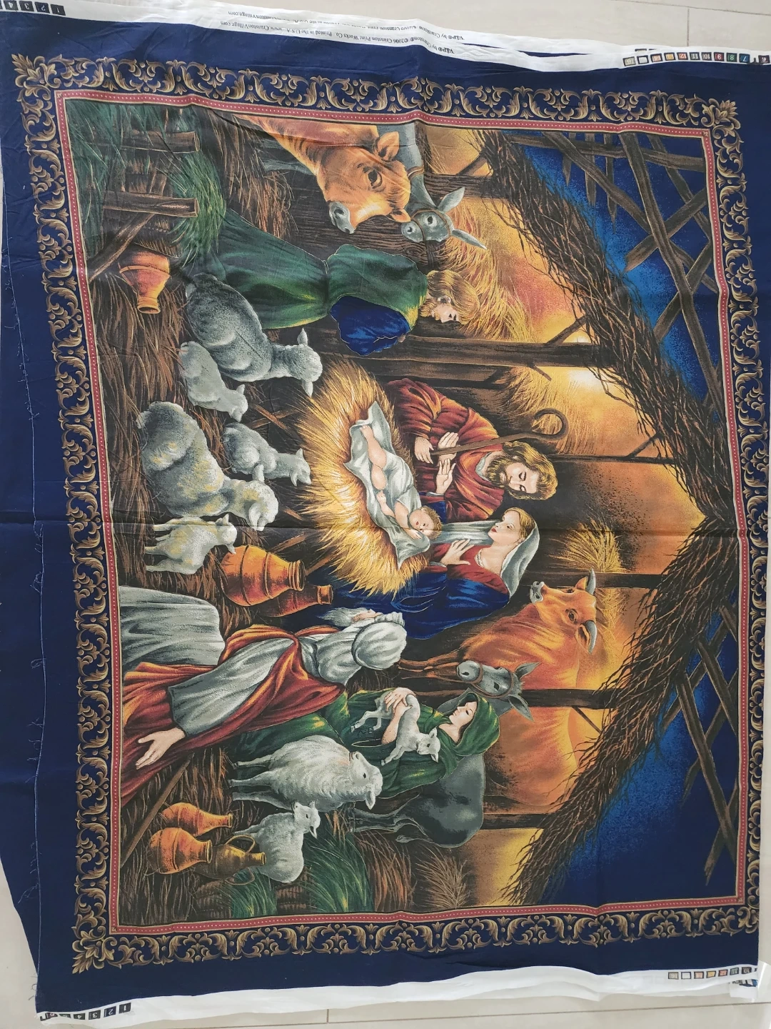 Christmas JESUS BIRTH Nativity Scene Fabric Panel