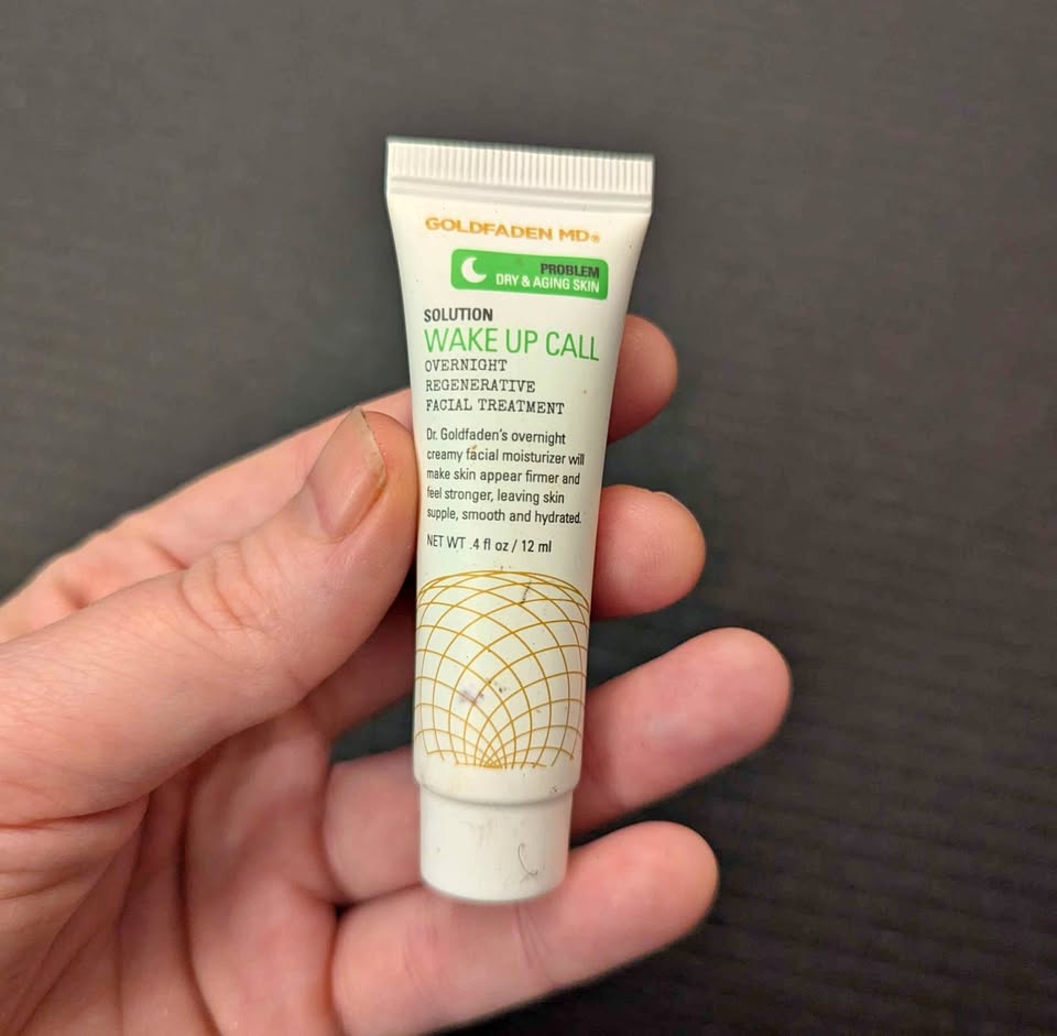 This is a brand new, travel-size tube (12ml) of the popular Goldfaden MD 'Wake Up Call' overnight facial treatment. Perfect for trying out this amazing product or for travel.