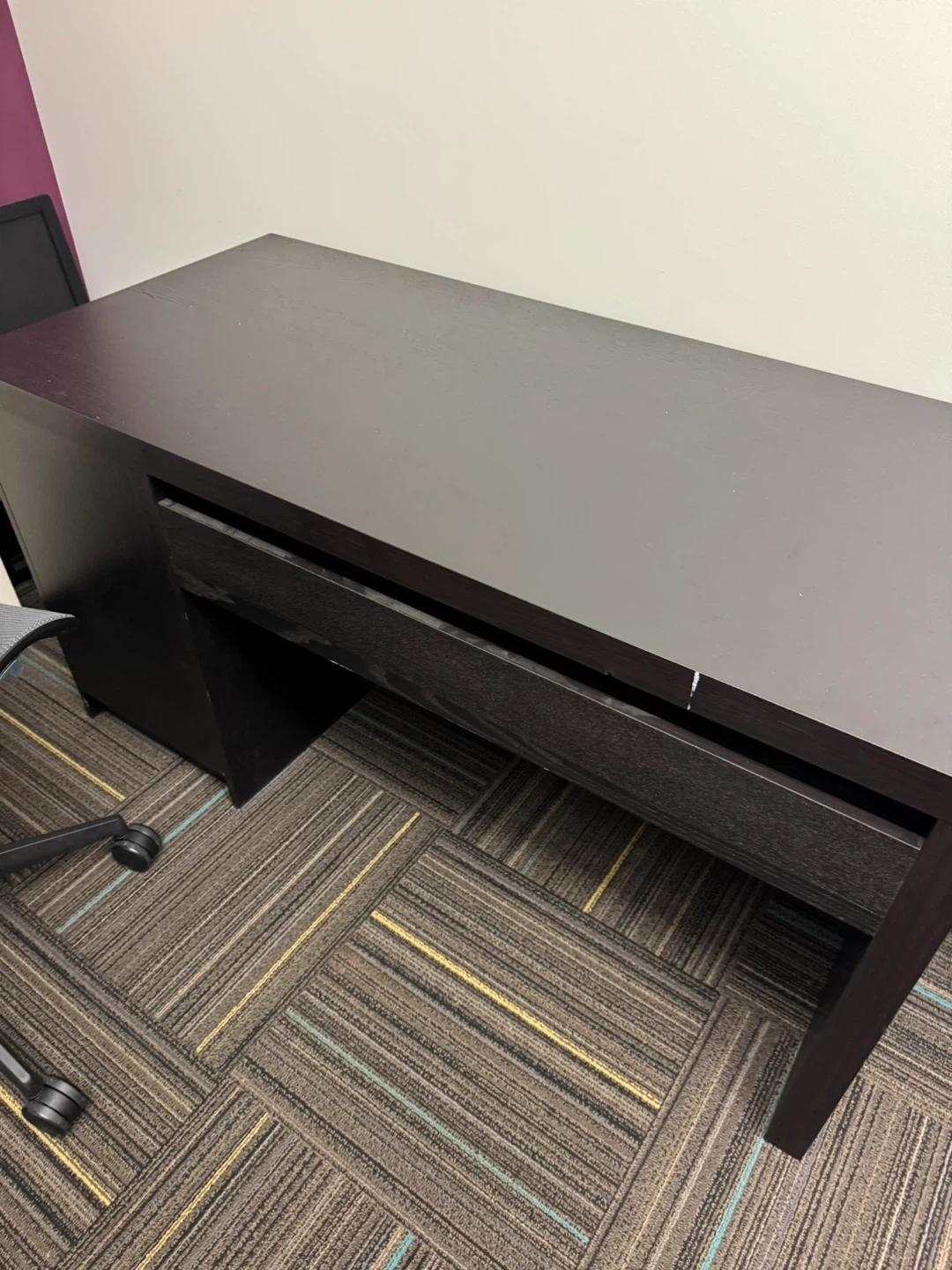 55x26x29. Giving away a dark brown desk. Weekdays daytime pick up corner of Beatty and Smithe. No onsite parking but a cut through lane behind the building is used by delivery drivers. You will need two people to lift it.