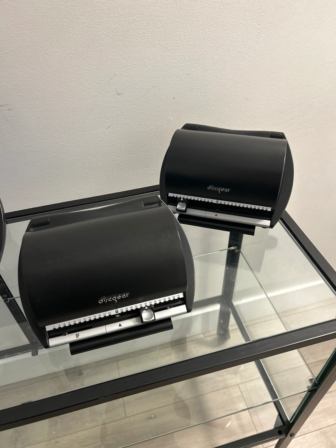 Selling a Discgear CD storage organizer. It's in great shape and ready to help you organize your CD collection! It's black and has a sliding mechanism to select the CD you want.50 CD’s capacity.