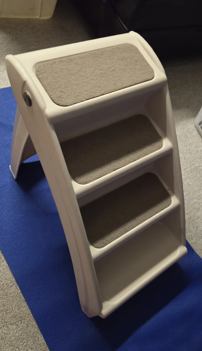 Selling a set of PetSafe CozyUp Folding Pet Steps! These steps are perfect for helping your furry friend reach their favourite spots. They're in great condition and ready for a new home! The steps are beige with carpeted pads.