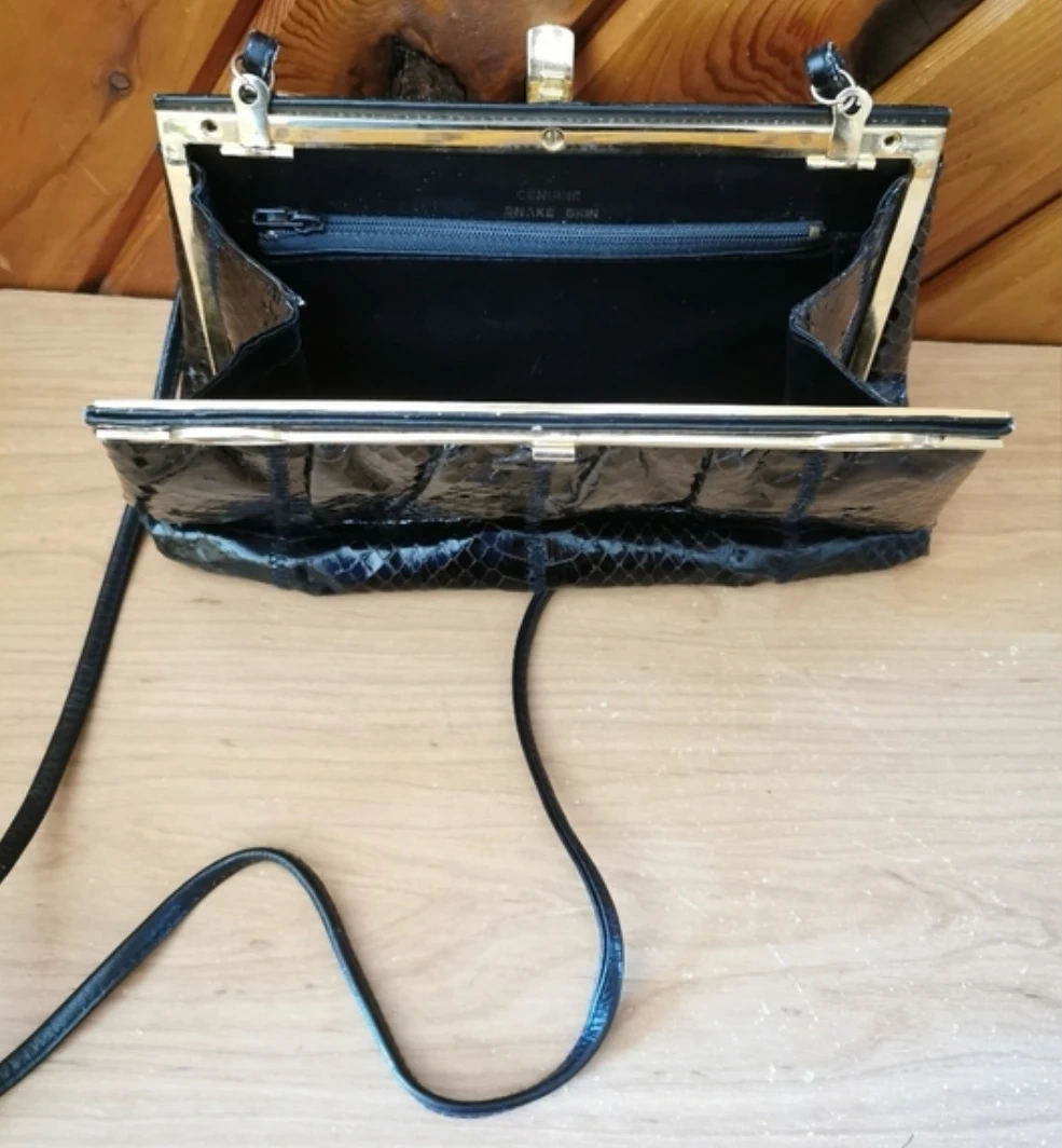 Vintage Black Genuine Snake Skin Bag.