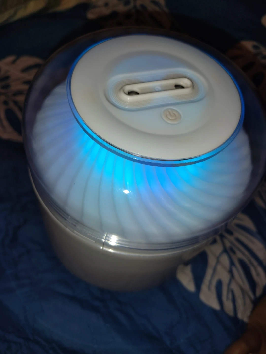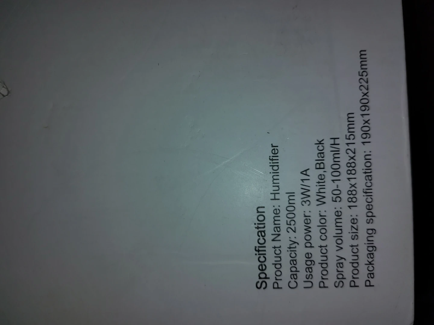 Selling a humidifier with seven colourful atmosphere lights! It has a capacity of 2.5L and a silent design. The spray volume is 50-100ml/H. Product colour is white.