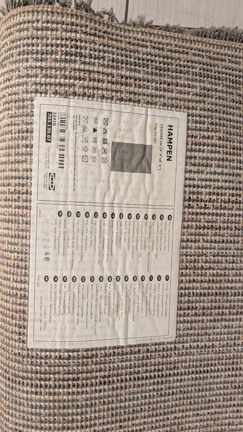 Selling a grey IKEA Hampen rug in great condition! It measures 133x195 cm, 4.4 ft x 6.5 ft and is made of 100% polypropylene