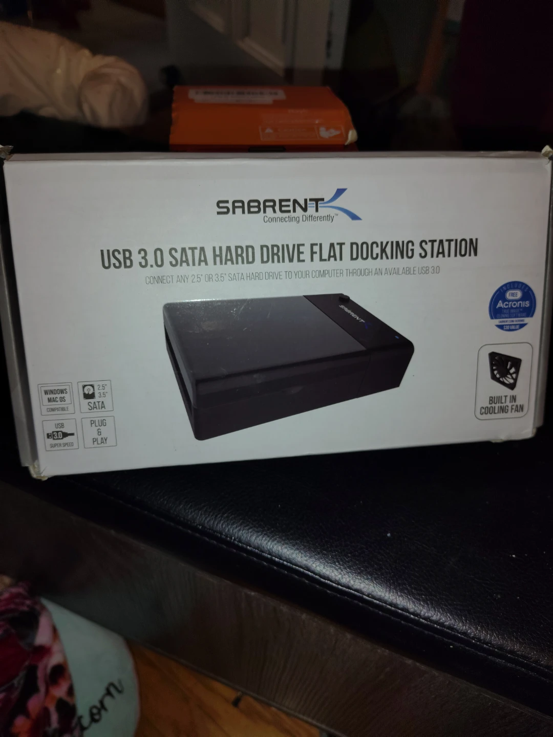 Selling a Sabrent USB 3.0 SATA Hard Drive Flat Docking Station. It connects any 2.5' or 3.5' SATA hard drive to your computer through an available USB 3.0. It is compatible with Windows and Mac OS. It also has a built in cooling fan.