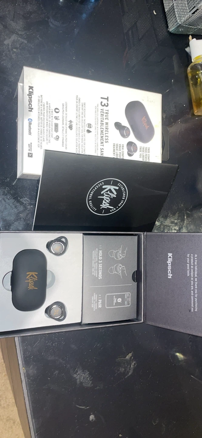 10Selling a pair of Klipsch T3 True Wireless earbuds in excellent condition! These earbuds offer a comfortable and secure fit thanks to the integrated ear wings and patented oval ear tips. Enjoy legendary, detailed, and dynamic Klipsch sound with clear voice chat. The box is included, and you'll get up to 6 hours of battery life with an additional 20 hours from the charging case. Open to trades obo.