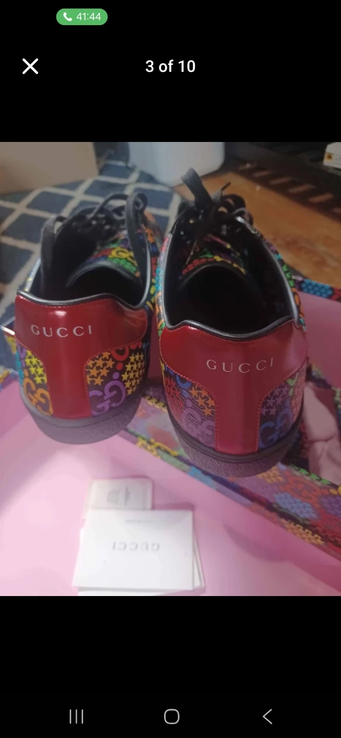 Selling a pair of Gucci men's sneakers. They come with the original box. The shoes feature a colourful pattern with the Gucci logo.Brand new never worn.Rare psychedelic gucci release.