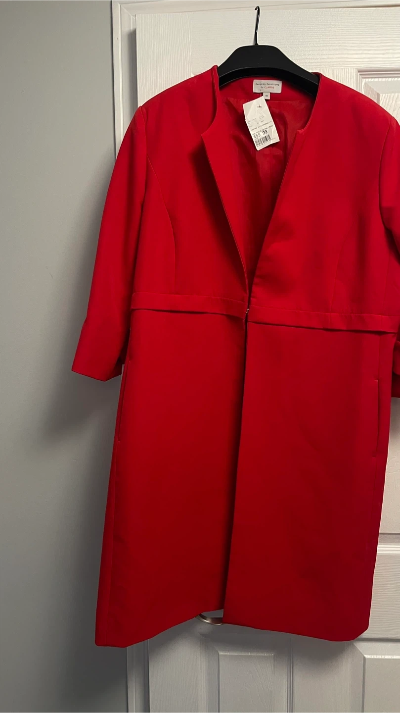 43Selling a beautiful red coat designed by David Koma for Clarins. It's a size 48 and originally bought for $59.99. The coat is in great condition and ready for a new home!