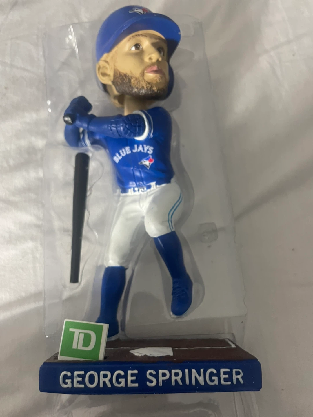 Selling a George Springer bobblehead in his Blue Jays uniform! It's still in its original packaging. Perfect for any Blue Jays fan or bobblehead collector!