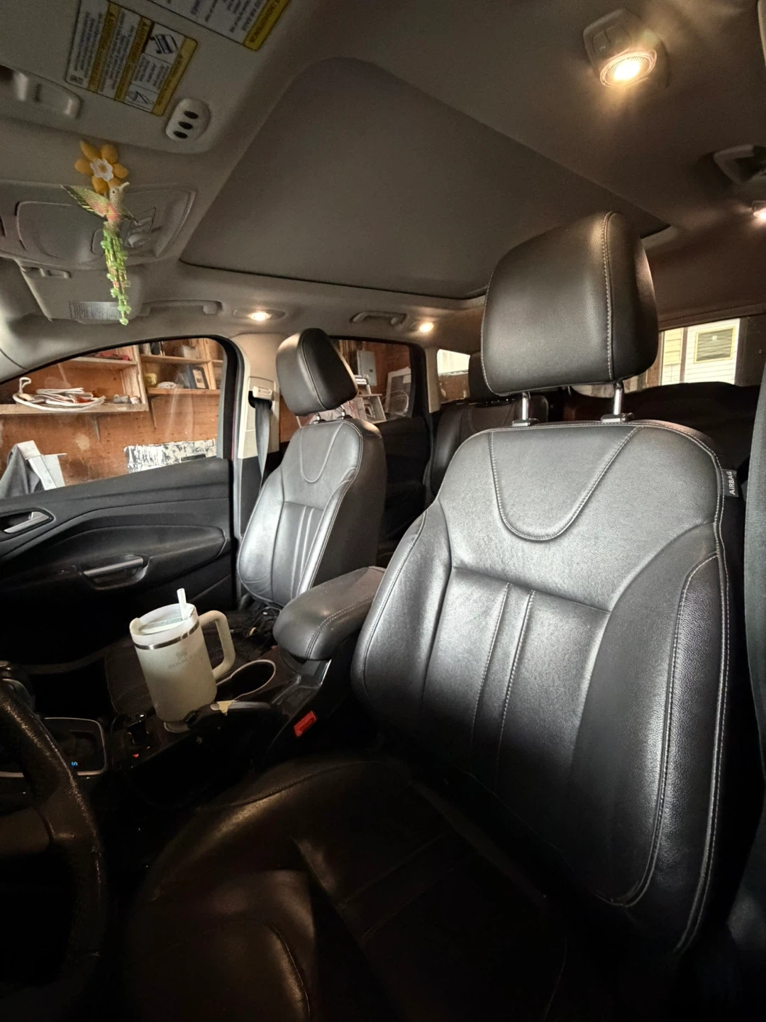 Selling my Ford Escape titanium 2013. It's in good condition and ready for a new owner. The interior is black leather, and the back seats fold down for extra cargo space. It also has a keypad on the door for keyless entry. Fully loaded