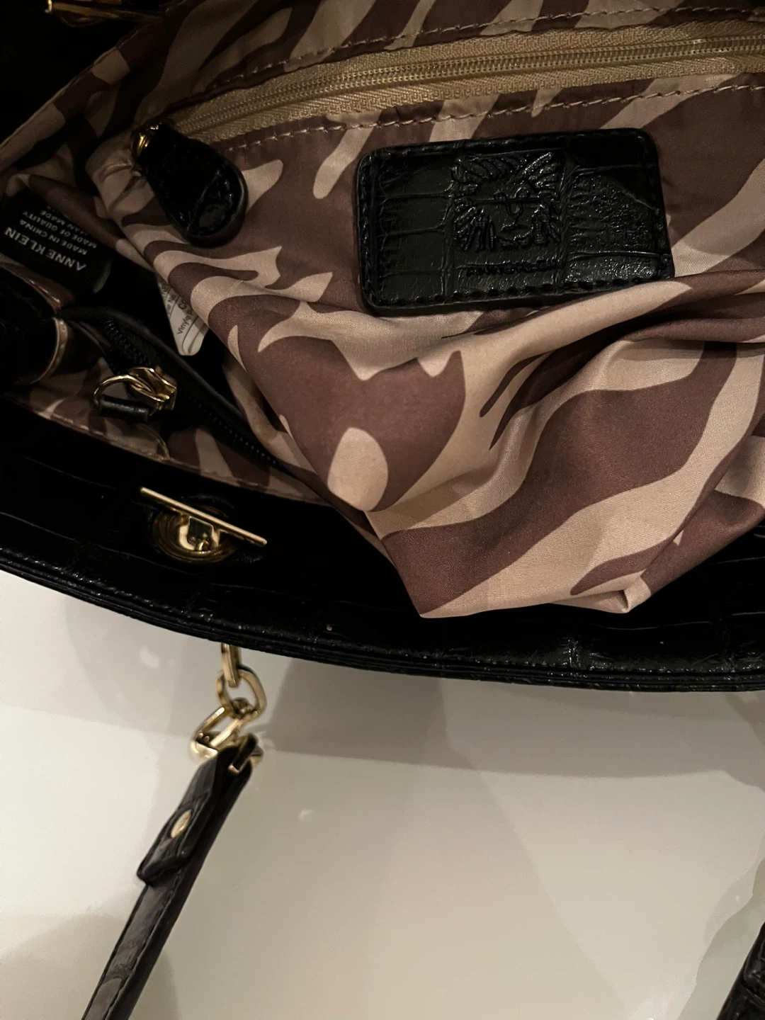 Buy & SellAnne Klein Black ToteAnne Klein Black Tote$20Anne Klein tote bag in black faux crocodile skinBrandAnne Klein2 chats·2 favorites·21 viewsSELLERverifiedNehemiasDovercourt22617 reviewsWHERE TO MEETCheck Location