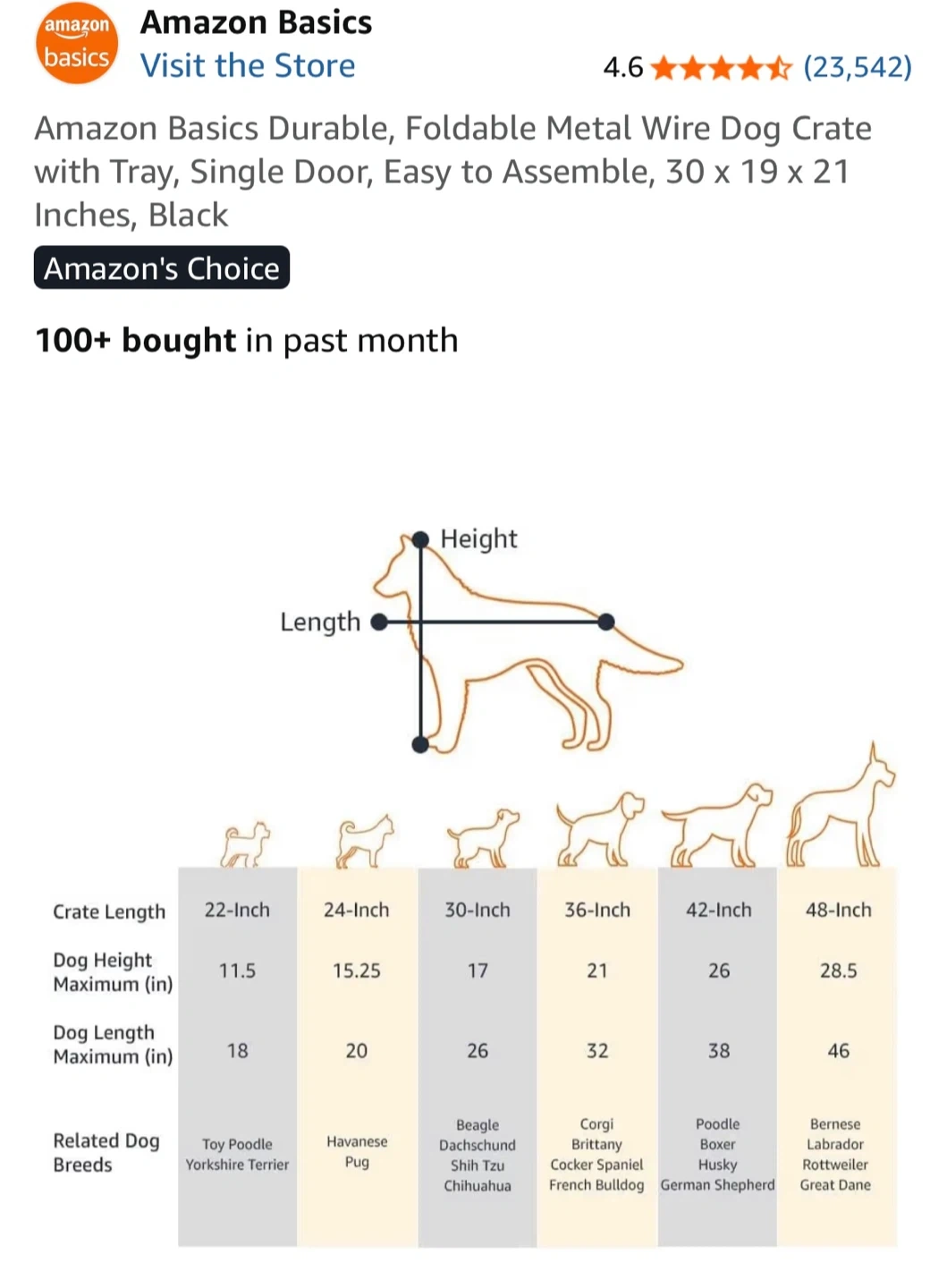 Amazon Basics Foldable Metal Wire Dog Crate 30x19x21"