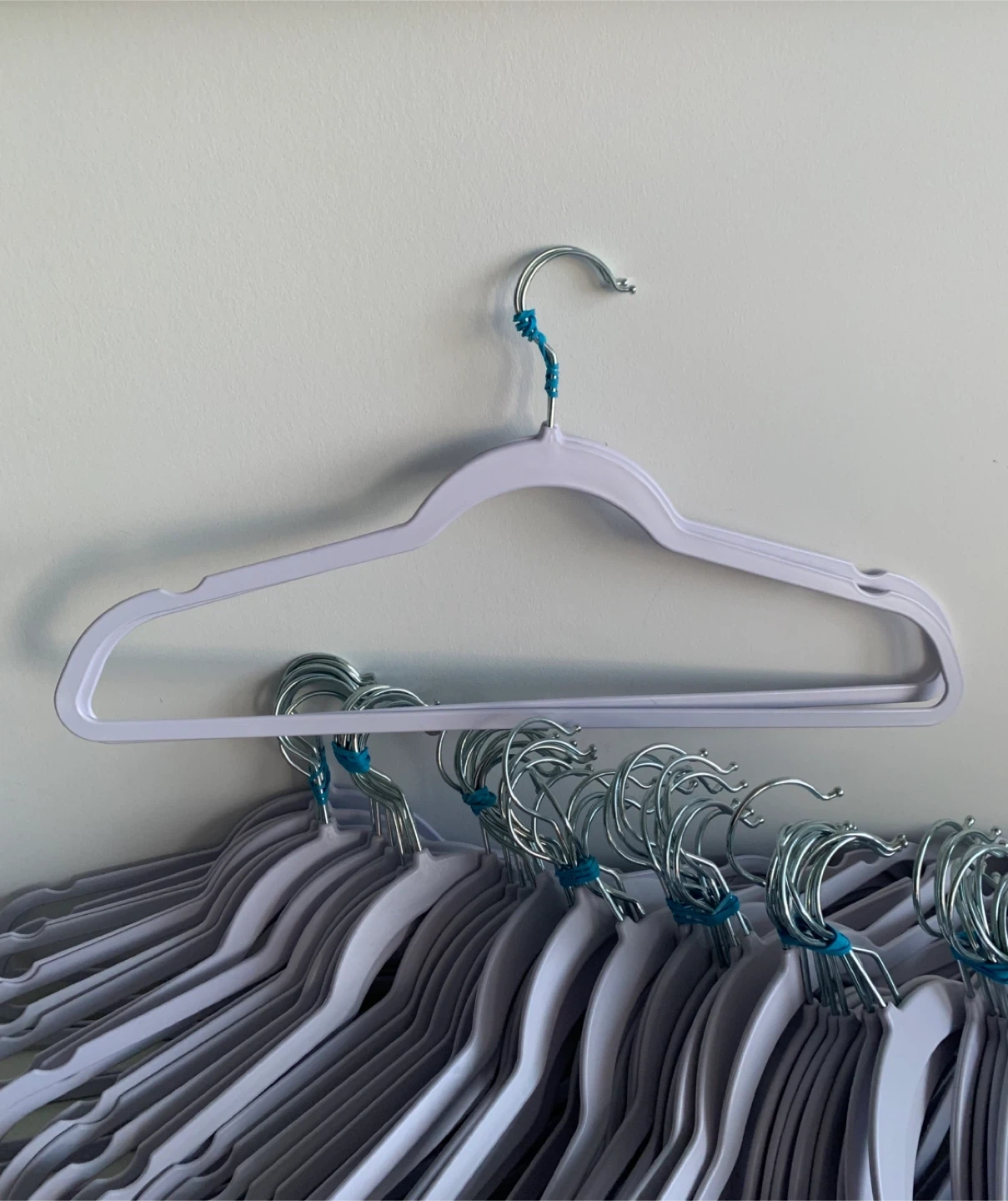 💜 Selling a set of 82 lavender (lilac)-coloured skinny pvc clothes hangers!