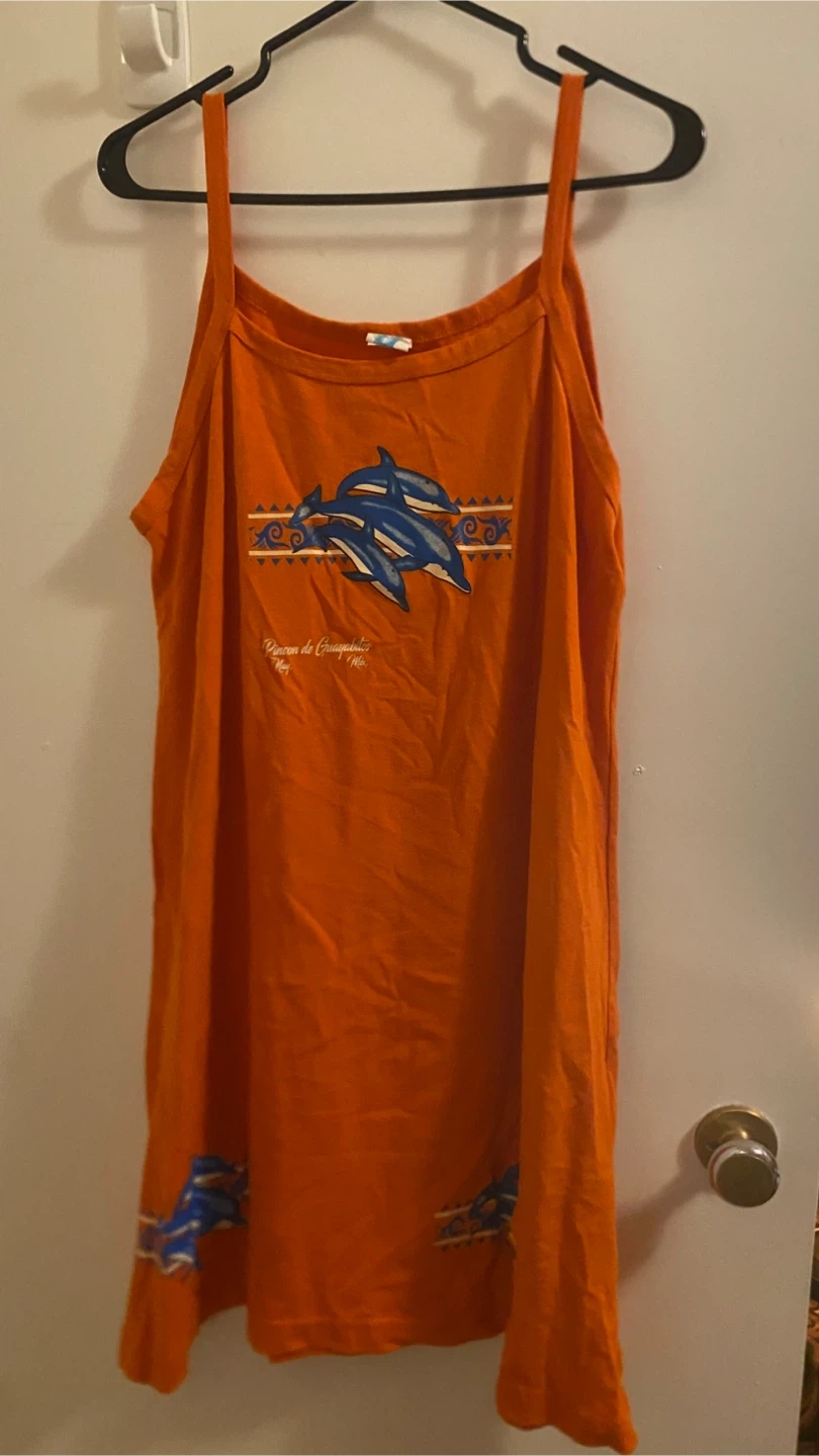 Printed dolphin graphics on the front and bottom of dress Super soft material