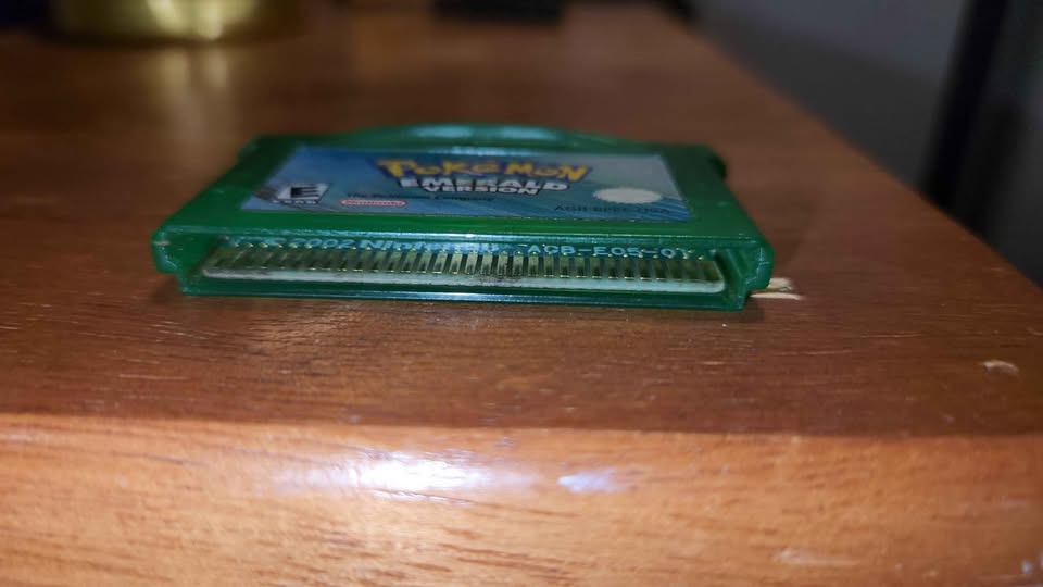 Authentic Game Boy Advance cartridge of Pokémon Emerald.