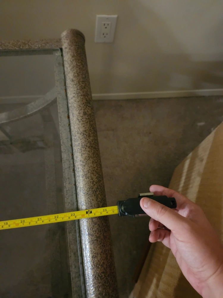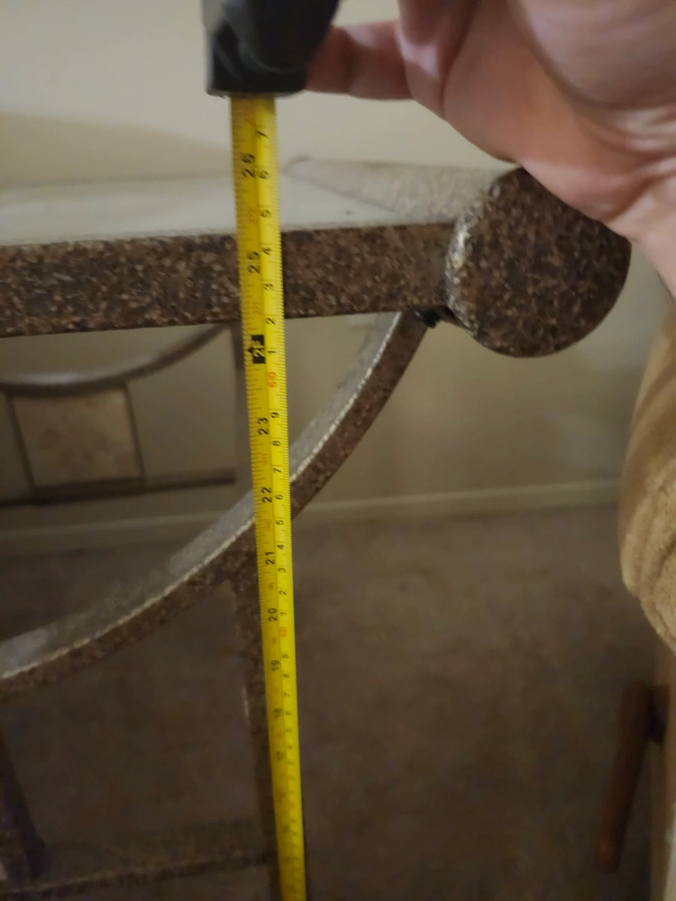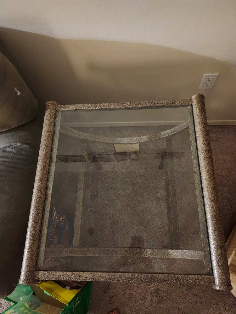 Selling a glass top end table. It's square and measures approximately 25 inches by 25 inches. The height is about 26 inches. Perfect for a living room or bedroom!