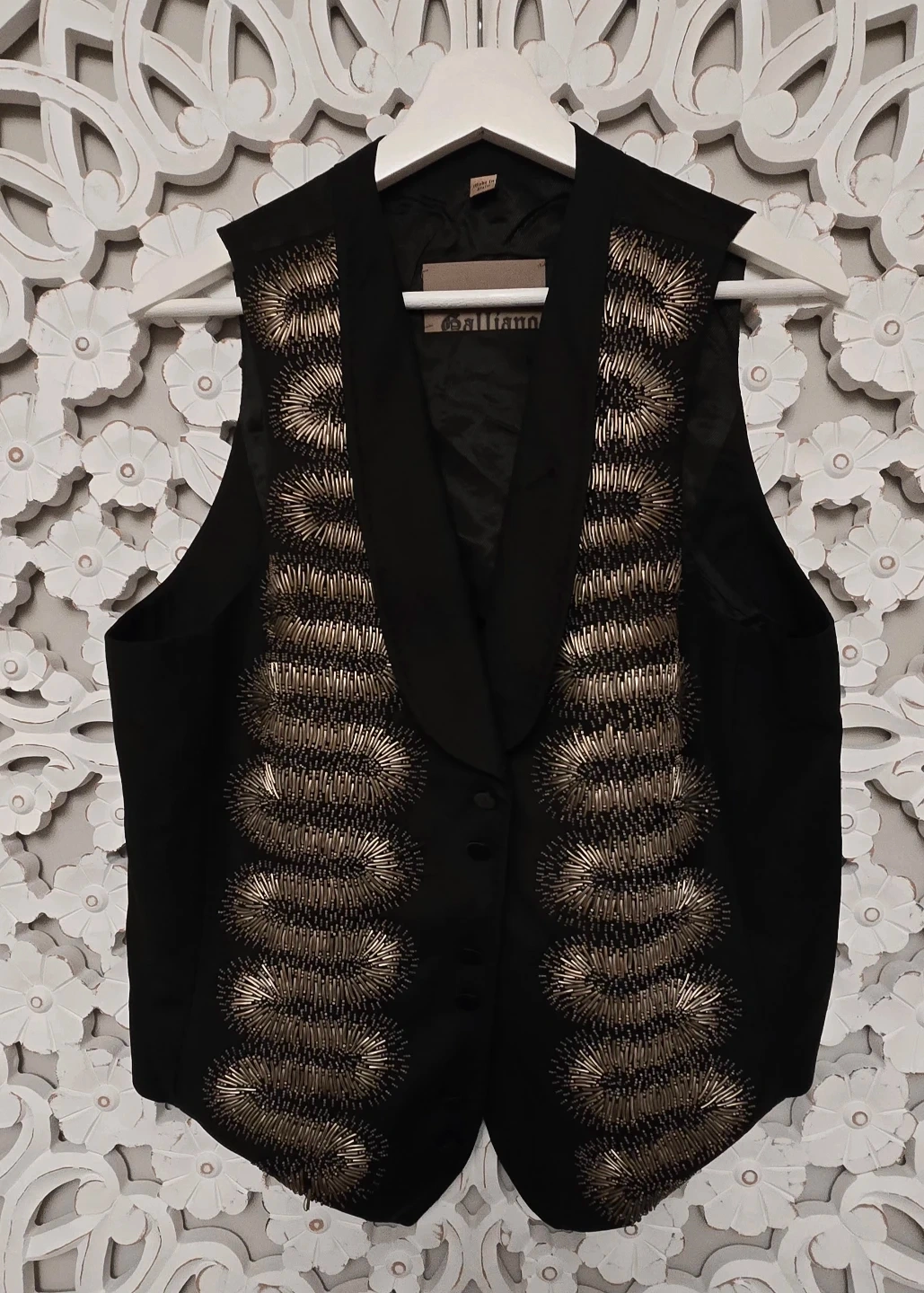 Here's a stylish black vest from John Galliano. It features unique detailing and is made in Italy.