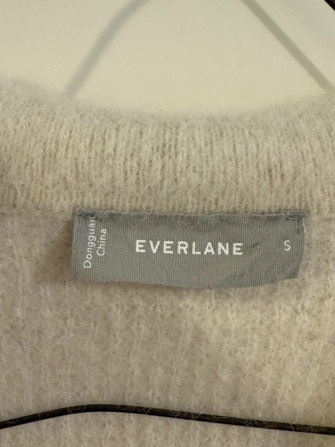 5Cozy Everlane sweater for sale! This sweater is a size small and made of a blend of 58% alpaca, 34% nylon, and 8% merino wool. It's a beautiful cream colour, perfect for staying warm - super soft :)