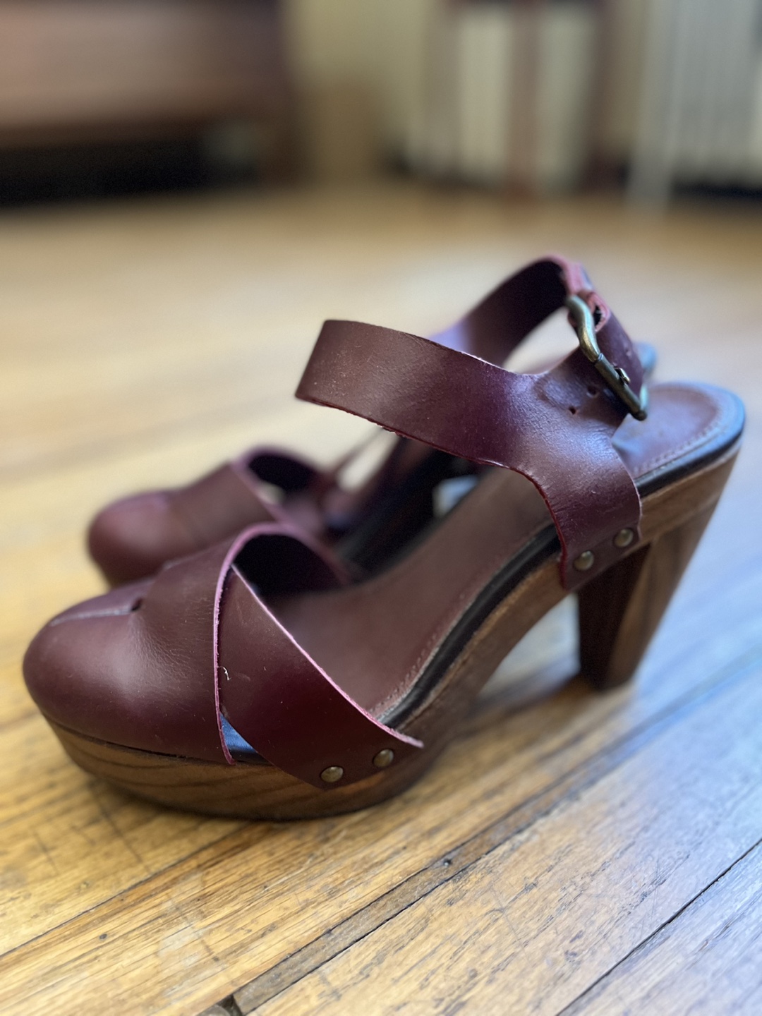 Brand New Burgundy Leather Clog Heels Size 7.5 / 38
