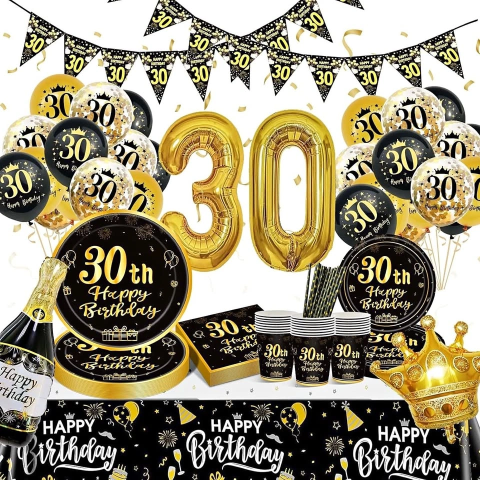 Perfect for 30th birthday decoration for women and men. Black gold birthday decoration set can be used on various occasions, suitable for birthday decorations, birthday parties, festival decorations, school parties, picnics, all occasions.