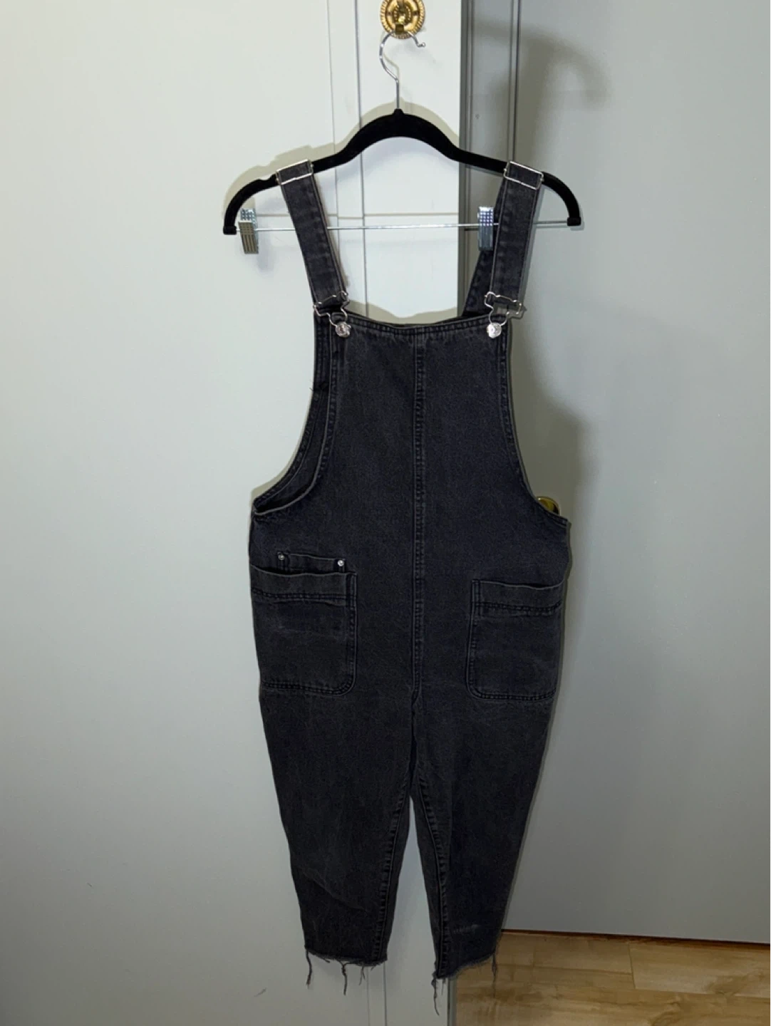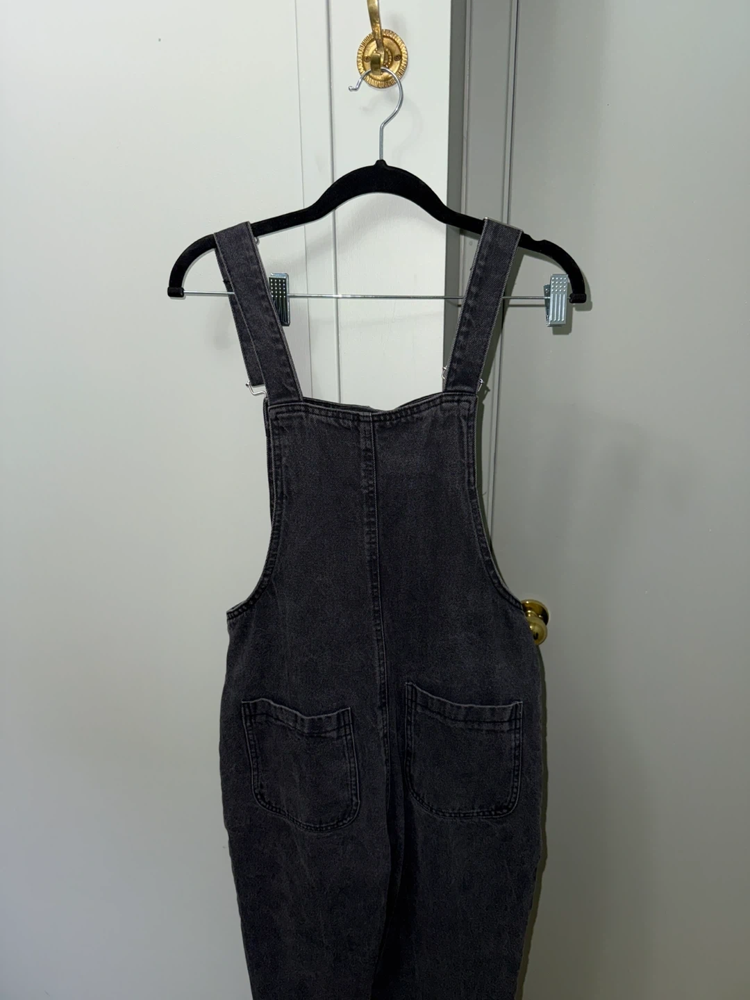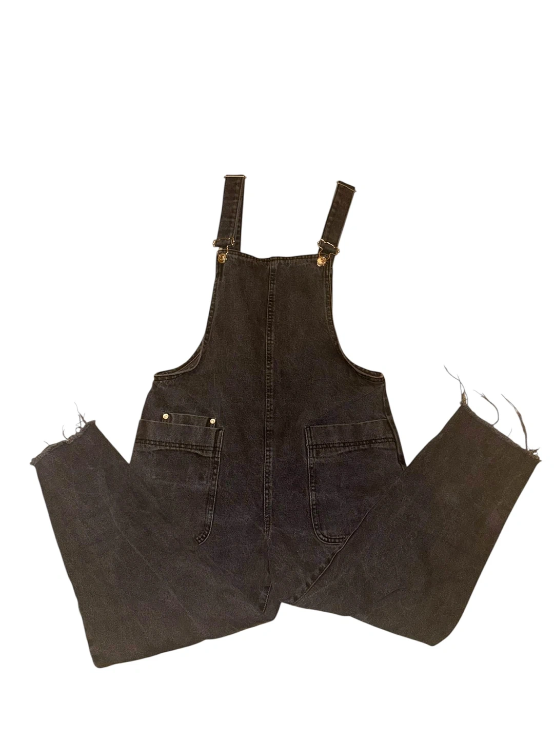72Selling a pair of Zara denim overalls in a dark grey wash. They're a size small and in great condition. Perfect for a casual, stylish look!