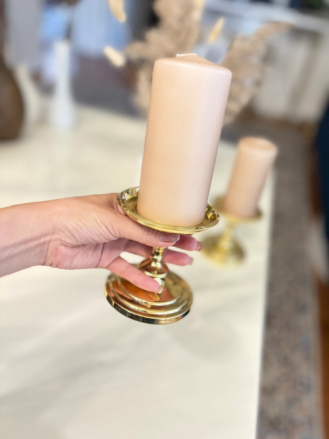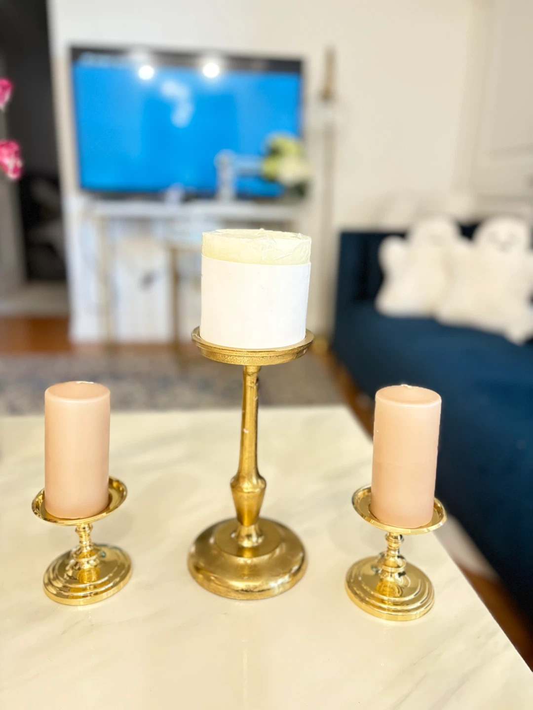 Selling a set of three gold candle holders. They add a touch of elegance to any room and are perfect for creating a cozy atmosphere. They're in great condition and ready to brighten up your space!