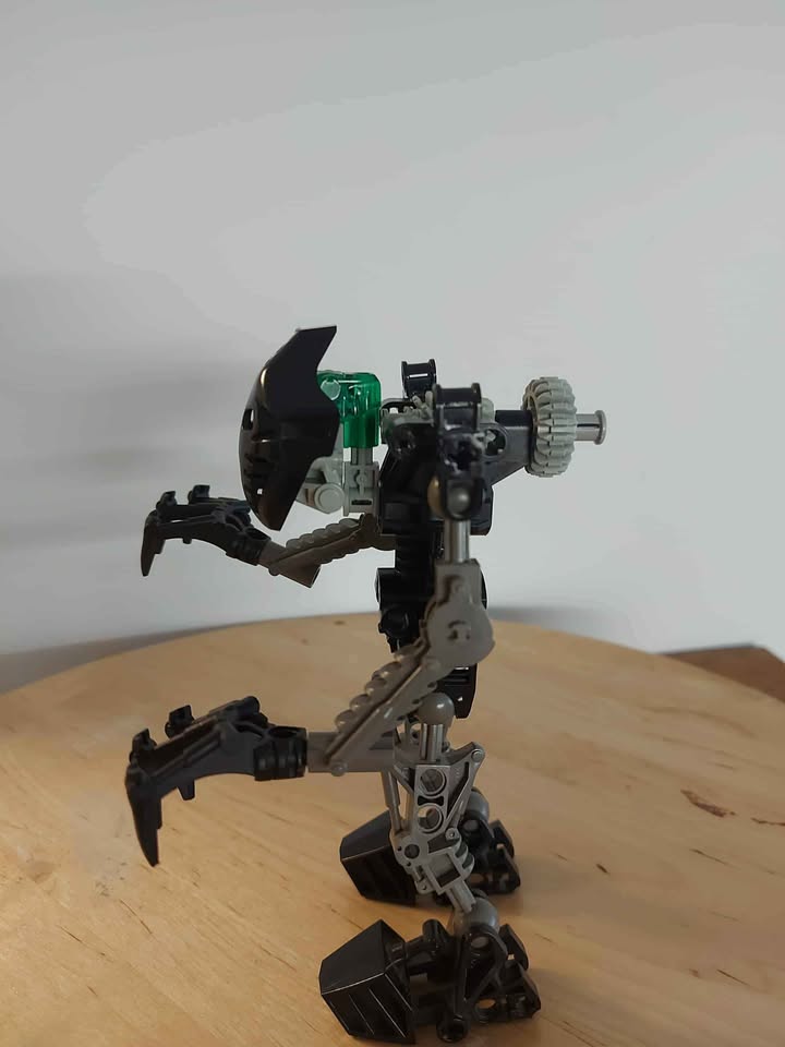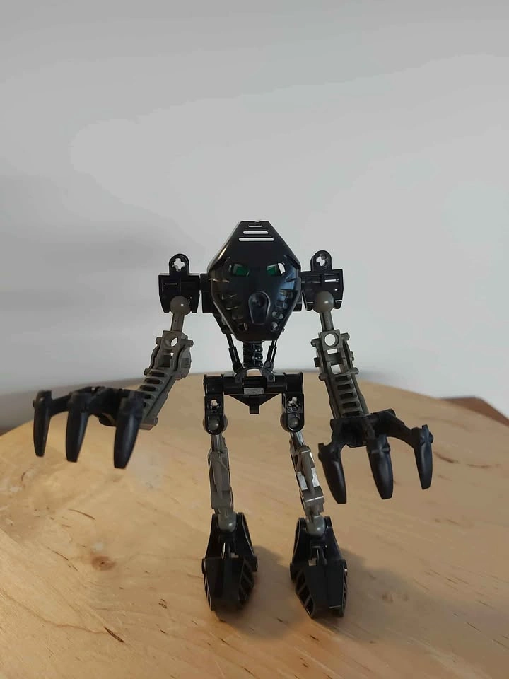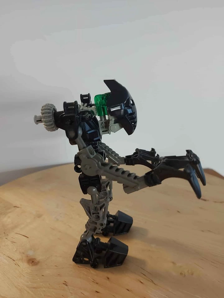 LEGO 8532 Onua is a 30 piece Bionicle set released in 2001. It features black armor, a Kanohi Pakari mask, and clawed hands activated by a gear mechanism for digging motions.