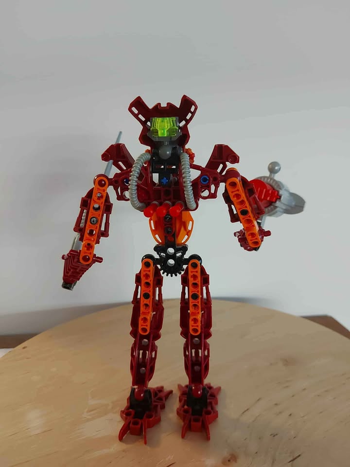 LEGO 8911 Toa Jaller is a Bionicle Toa Mahri set released in 2007, containing 68 pieces. The set builds an articulated Toa of Fire with an aquatic power blade and Mask of Sonar, with a firing Cordak blaster. It includes three extra Cordak ammo pieces stored horizontally across Jaller’s back.